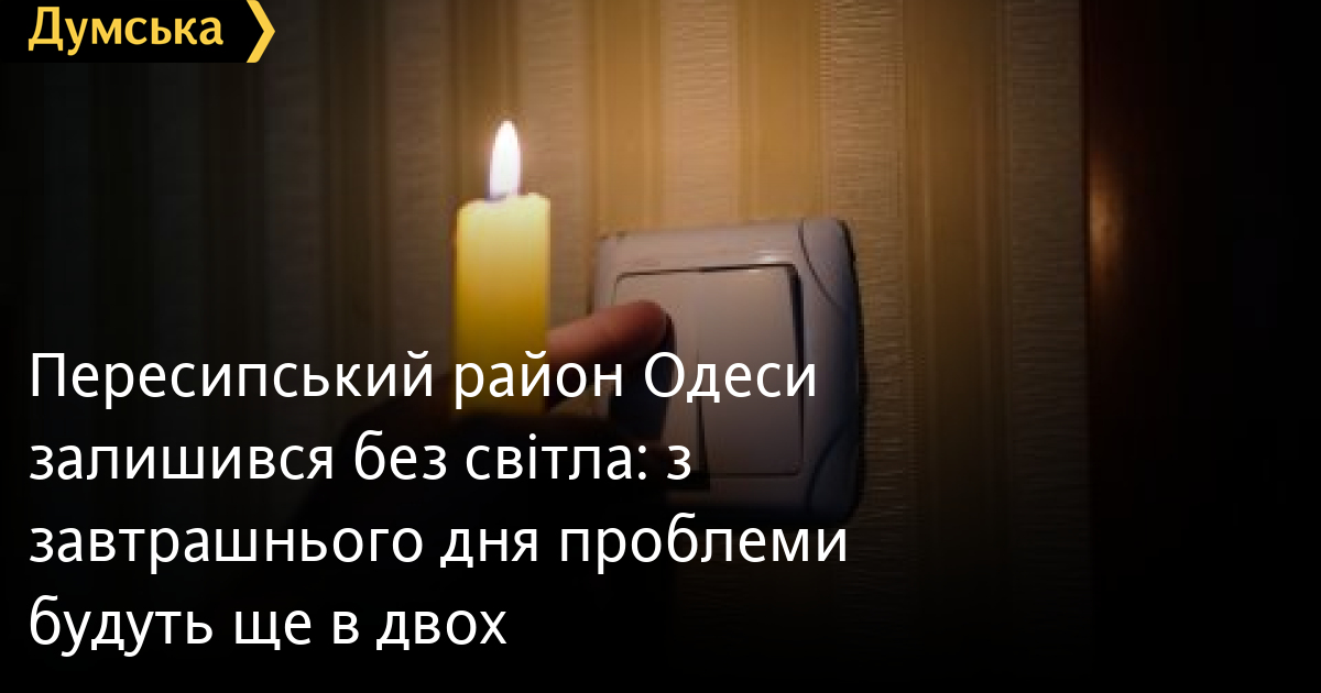 Пересипський район Одеси залишився без світла: з завтрашнього дня проблеми будуть ще в двохПересипський район Одеси залишився без електропостачання в результаті аварії на обладнанні. Як повідомили в ДТЕК Одеські електромережі, світла немає також у частини жителів Одеського району. Фахівці вже працюють на місцях, щоб якомога швидше відновити електропостачання. Крім того, в компанії попередили, що в найближчі три дні – 13, 14 і 15 січня – з 09:00 до 16:00 енергетики проводитимуть невідкладні ремонти на обладнанні. «Для їх безпеки в ці дні буде знеструмлена частина будинків мешканців Хаджибейського та Київського районів міста Одеси. Критична інфраструктура буде зі світлом», — запевнили в ДТЕК. СМЕРТЬ РОСІЙСЬКИМ ОКУПАНТАМ! Помітили помилку? Виділяйте слова з помилкою та натискайте control-enter |