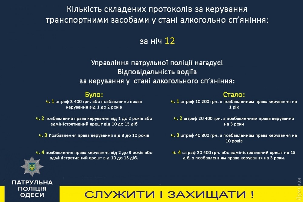 Так, согласно нововведениям, штаф за управление транспортным средством в пьяном виде (ч.1 статья 130) составляет уже не 3400 гривен, а 10200.