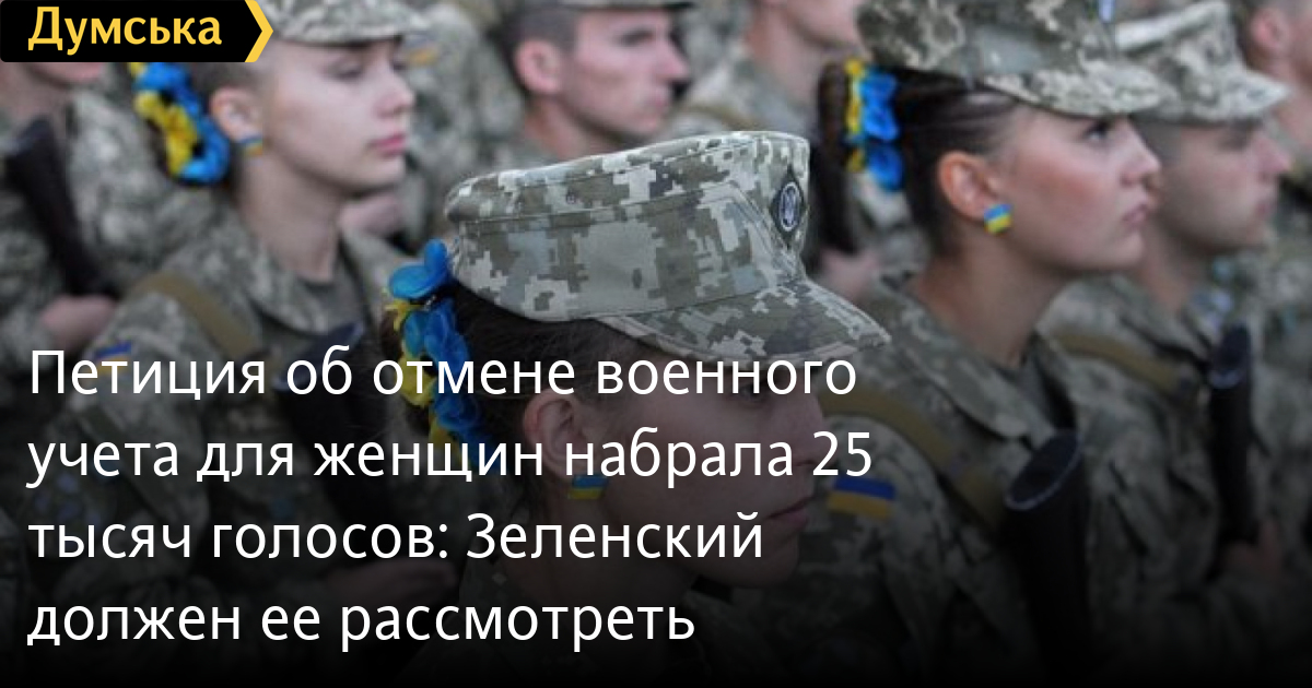 Петиция об отмене военного учета для женщин набрала 25 тысяч голосов: Зеленский должен ее рассмотреть26 269 голосов из 25 тысяч необходимых набрала петиция Яны Рашевченко об отмене приказа Минобороны о так называемом военному учете для женщин. Данная информация обнародована на сайте главы государства. Текст петиции появился 23 декабря. Автора возмутило, что перечень расширили без предварительных общественных слушаний, переходного периода и разъяснений о механизме реализации. Отметим, в течение трех рабочих дней президент должен сообщить о начале рассмотрения петиции, которая набрала необходимое количество голосов. После этого у главы государства есть десять рабочих дней на ответ. Напомним, перечень специальностей и профессий, согласно которому на обязательный воинский учет должны стать женщины, пригодные к прохождению службы по состоянию здоровья и возрасту (от 18 до 60 лет), вступил в силу 17 декабря. Речь идет об украинках, которые работают в сфере госбезопасности, транспортной сфере, IT, медицине, журналистике, туризме, педагогике и т.д. С полным перечнем можно ознакомиться здесь. СМЕРТЬ РОССИЙСКИМ ОККУПАНТАМ! Заметили ошибку? Выделяйте слова с ошибкой и нажимайте control-enter |