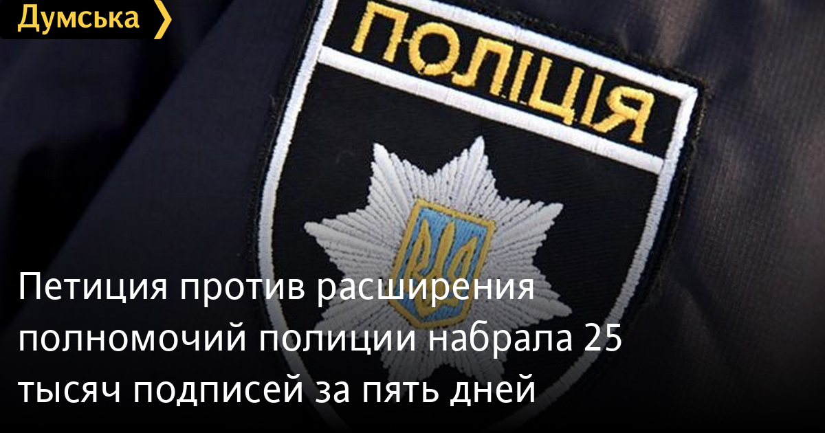 Петиция против расширения полномочий полиции набрала 25 тысяч подписей за пять днейПетиция против законопроекта №2695, который увеличивает штрафы для нарушителей ПДД и расширяет полномочия полиции, набрала 25 тыс. подписей за пять дней. Об этом свидетельствуют данные на сайте президента Украины. Отметим, что вышеуказанный документ Верховная Рада уже одобрила в первом чтении, и он вызвал шквал критики и негодования в обществе. Дело в том, что законопроект существенно расширяет полномочия полиции за счет прав граждан. Например, документом вводится новая норма, которая позволяет останавливать автомобили без всякой причины, а просто в рамках «профилактических мер». Более того, по требованию полицейского водитель обязан выключить двигатель и вынуть ключи из замка зажигания; выйти из машины, держать руки в поле зрения полицейского и выполнять все его требования. Кроме того, меняются понятия «поверхностной проверки». Теперь полиция может потребовать открыть багажник, капот, двери салона и другие ниши, которые можно осмотреть без разбирания. Украинцы уверены, что все это приведет к злоупотреблениям со стороны правоохранителей, и серьезно ущемит права водителей. Напомним, что на любую петицию, набравшую 25 тыс. голосов должен ответить президент Украины. Теперь слово за Владимиром Зеленским. СМЕРТЬ РОССИЙСКИМ ОККУПАНТАМ! Заметили ошибку? Выделяйте слова с ошибкой и нажимайте control-enter |