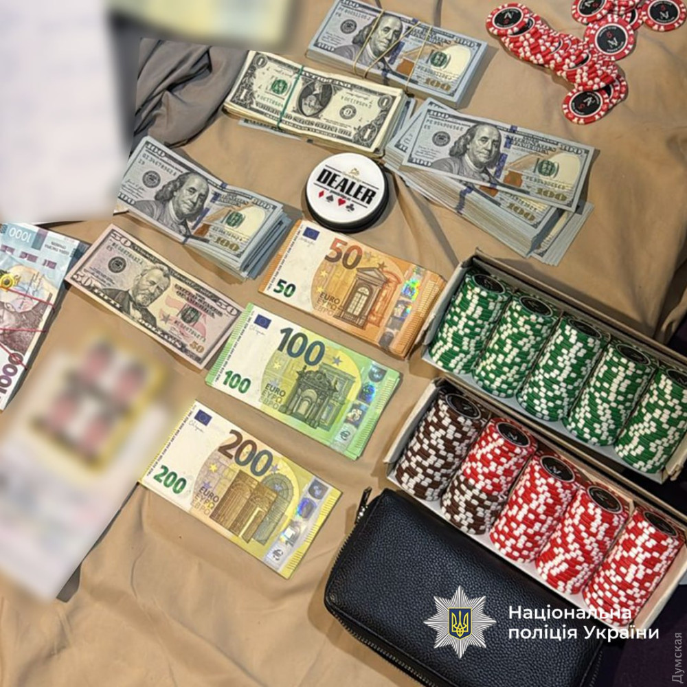У результаті спецоперації поліція ліквідувала гральний заклад. Під час обшуків вилучили понад 22 тисячі доларів, майже 6 тисяч євро, 73 тисячі гривень, а також гральні фішки, карти та чорнові записи.