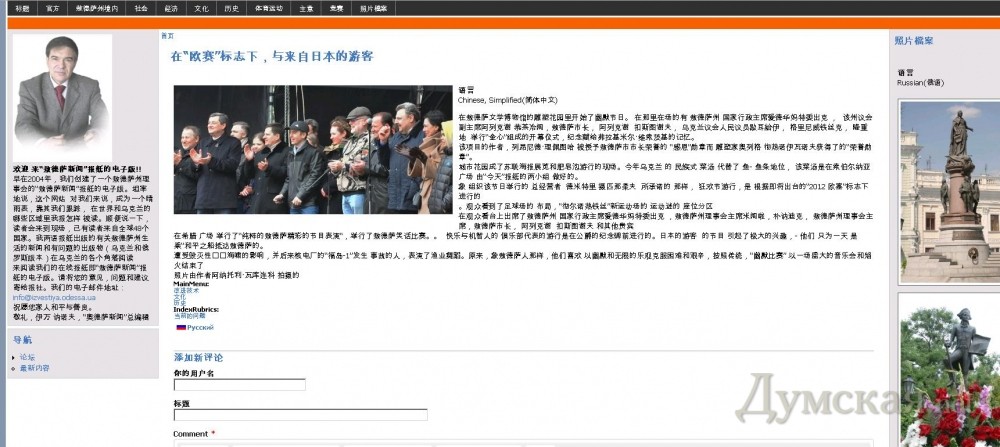 В Одесском облсовете презентована китайскоязычная электронная версия газеты «Одесские известия». Следует отметить, что это первый в Украине сайт средства массовой информации на китайском языке. По словам главного редактора газеты Ивана Ненова, этот сайт призван стать единым информационным порталам для всех людей, говорящих по-китайски и стремящихся получить исчерпывающую информацию о жизни в Одесском регионе. Для удобства читателей все свежие материалы будут выкладываться на первой странице сайта раз в две недели и по мере их устаревания будут размещаться в 10 рубриках сайта.