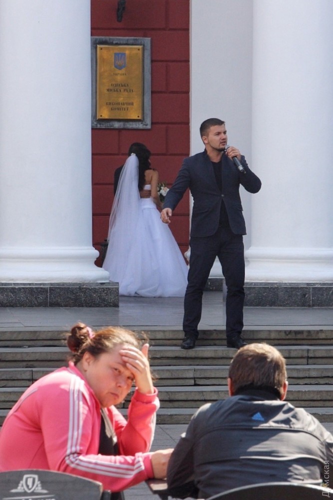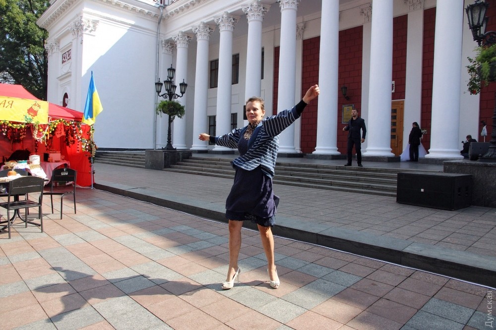 Со ступенек мэрии выступают одесские творческие коллективы.