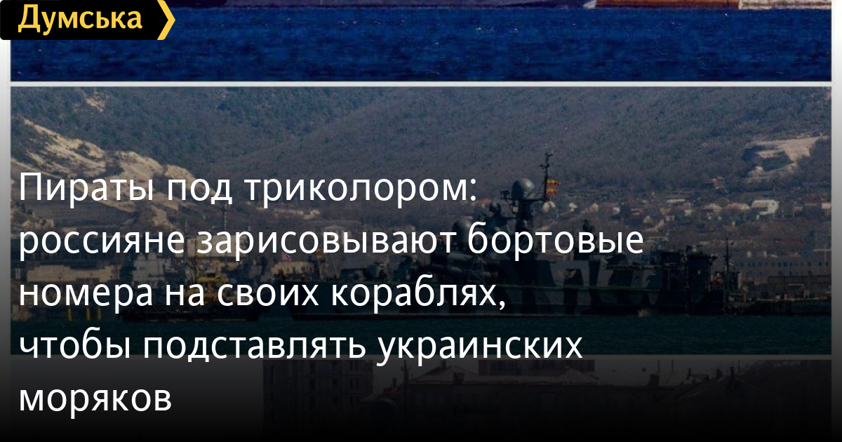Пираты под триколором: россияне зарисовывают бортовые номера на своих кораблях, чтобы подставлять украинских моряковВоенные страны-агрессора закрашивают на своих кораблях названия и бортовые номера. Вероятно, чтобы атаковать гражданские суда, а вину валить на украинских моряков. Об этом сообщают в Министерстве обороны Украины. «Осознавая грязные методы ведения войны российскими оккупантами, в этой акции усматривается подготовка к предстоящим провокациям в отношении гражданских судов с последующим обвинением в них украинских военных кораблей», — говорится в сообщении Минобороны. Под предлогом фейковой контртеррористической операции российские пираты заблокировали работу украинских портов и обстреляли 4 гражданских судна. Один из подбитых танкеров превратили в экологическую бомбу. Кроме того, российские нацисты захватывают и удерживают в плену гражданские грузовые суда. А также препятствуют спасательным операциям – захватили украинское поисково-спасательное судно «Сапфир» и неоднократно угрожали применением оружия спасательным катерам, которые шли на помощь экипажам подбитых судов. СМЕРТЬ РОСІЙСЬКИМ ОКУПАНТАМ! Помітили помилку? Виділяйте слова з помилкою та натискайте control-enter |