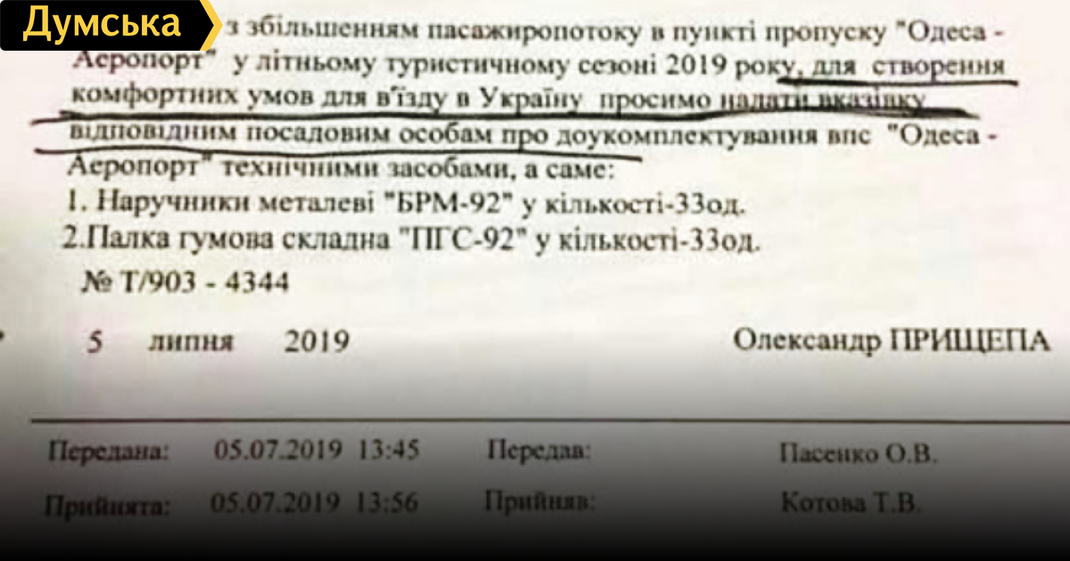 «Для создания комфортных условий»: пограничники одесского аэропорта закупают наручники и дубинкиПограничники, несущие службу в пункте пропуска «Одесса-Аэропорт», решили обзавестись новым «высокотехнологичным» оборудованием к туристическому сезону. Об этом идет речь в документе, подписанном одним из руководителей отдела Александром Прищепой. «В связи с увеличением пассажиропотока в пункте пропуска «Одесса-Аэропорт» в летнем туристическом сезоне 2019 года для создания комфортных условий для въезда в Украину просим дать указание соответствующим должностным лицам о доукомплектовании международного пункта пропуска техническими средствами, а именно: 1. Наручниками металлическими «БРМ-92» в количестве 33 штук. 2. Палка резиновая складная «ПГС-92» в количестве 33 штук». Документ датирован 5 июля 2019 года. Надеемся, что с помощью этих технических средств обслуживание пассажиров одесского аэропорта заметно улучшится. СМЕРТЬ РОСІЙСЬКИМ ОКУПАНТАМ! Помітили помилку? Виділяйте слова з помилкою та натискайте control-enter Новини по цій темі: 18 квітня 2024: Ексмер Одеси Олексій Костусєв ховається від слідства в елітному районі Лондона: стала відома його адреса 29 березня 2024: Справа про заволодіння аеропортом "Одеса": ексвіцемер Орловський відбувся умовним терміном 28 лютого 2024: Відкрити українське небо: чим Бориспіль відрізняється від Бен-Гуріона і що потрібно зробити для відновлення авіасполучення? 23 лютого 2024: Костусєв ховається у Лондоні: за крадіжку одеського аеропорту його судитимуть заочно 11 грудня 2023: Ексмера Одеси Костусєва заочно постановили ув`язнити в СІЗО |