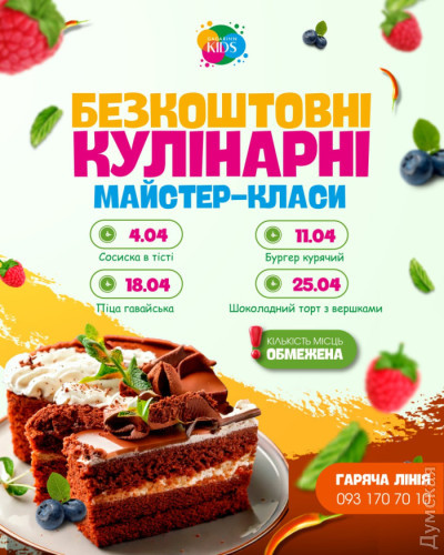 Піца, бургер і шоколадний десерт: у Gagarinn Kids чекають на дітей на кулінарних майстер-класах (на правах реклами)Gagarinn Kids запрошує юних гостей взяти участь у кулінарних майстер-класах. Щоп'ятниці у Вас є можливість навчитись готувати страви, якими ви зможете потім вдома порадувати своїх рідних. 4.04 – готуємо казкову «Сосиска в тісті». 11.04 – готуємо смачний бургер з куркою. 18.04 – зможемо приготувати «Піца гавайська». 25.04 – вчимося готувати класичний «Шоколадний торт з вершками». Участь – безкоштовна, для відвідувачів комплексу Gagarinn Kids. Чекаємо вас за адресою: Одеса, вулиця Генуезька, 5. Початок о 16.00. Помітили помилку? Виділяйте слова з помилкою та натискайте control-enter |