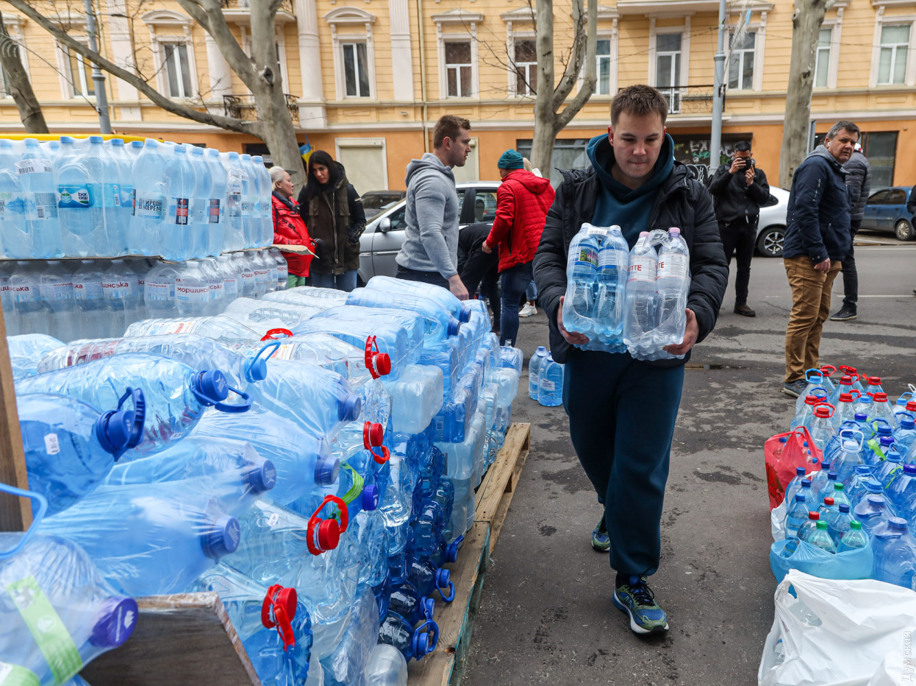 «Нам привозят бидоны, баклажки, бутилированную воду со всей Одессы, как компании, которые занимаются очисткой и доставкой воды, так и горожане в частном порядке , - рассказала Наталья. — Нам точно не хватит одной машины, чтобы отвезти все, что нам принесли горожане».