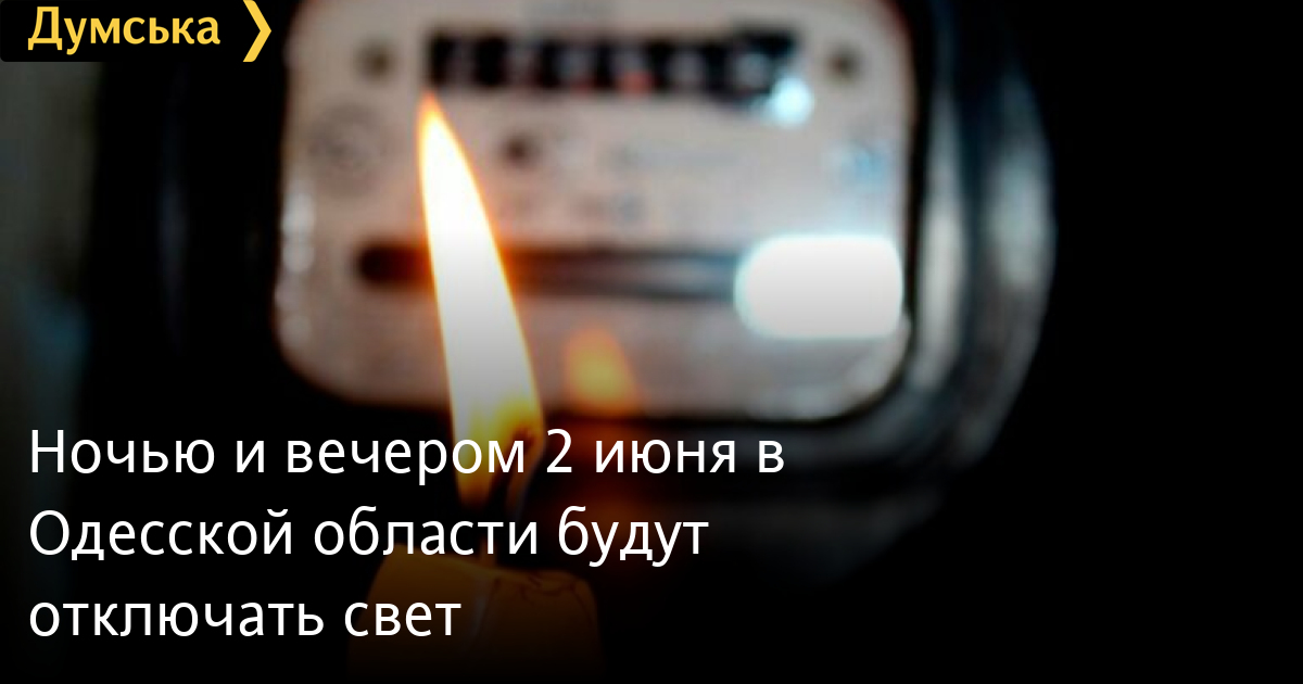 Вночі та ввечері 2 червня в Одеській області відключатимуть світлоГрафіки відключення електроенергії застосовуватимуться вночі та ввечері 2 червня в Одеській області. Як повідомили у пресслужбі ДТЕК Одеські електромережі, отриманих від «Укренерго» лімітів вистачить на забезпечення 81% від потреб регіону. Тому з 00:00 до 5:00 і з 18:00 до 24:00 відключатимуть світло. У компанії нагадали, що стабілізаційні відключення проводяться для збереження енергетичної системи України. «Через російські атаки зруйновано 80% теплової та гідрогенерації. Електроенергії, яку виробляє та імпортує Україна, не завжди вистачає. Так виникає дефіцит. Для порятунку енергосистеми від масштабних аварій вводяться стабілізаційні відключення», — додали в ДТЕК Одеські електромережі. Там також закликали жителів самостійно економити електроенергію. Помітили помилку? Виділяйте слова з помилкою та натискайте control-enter |