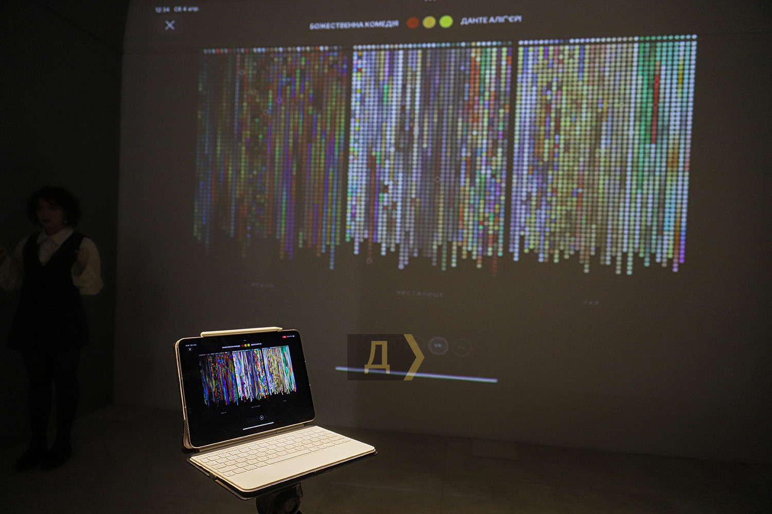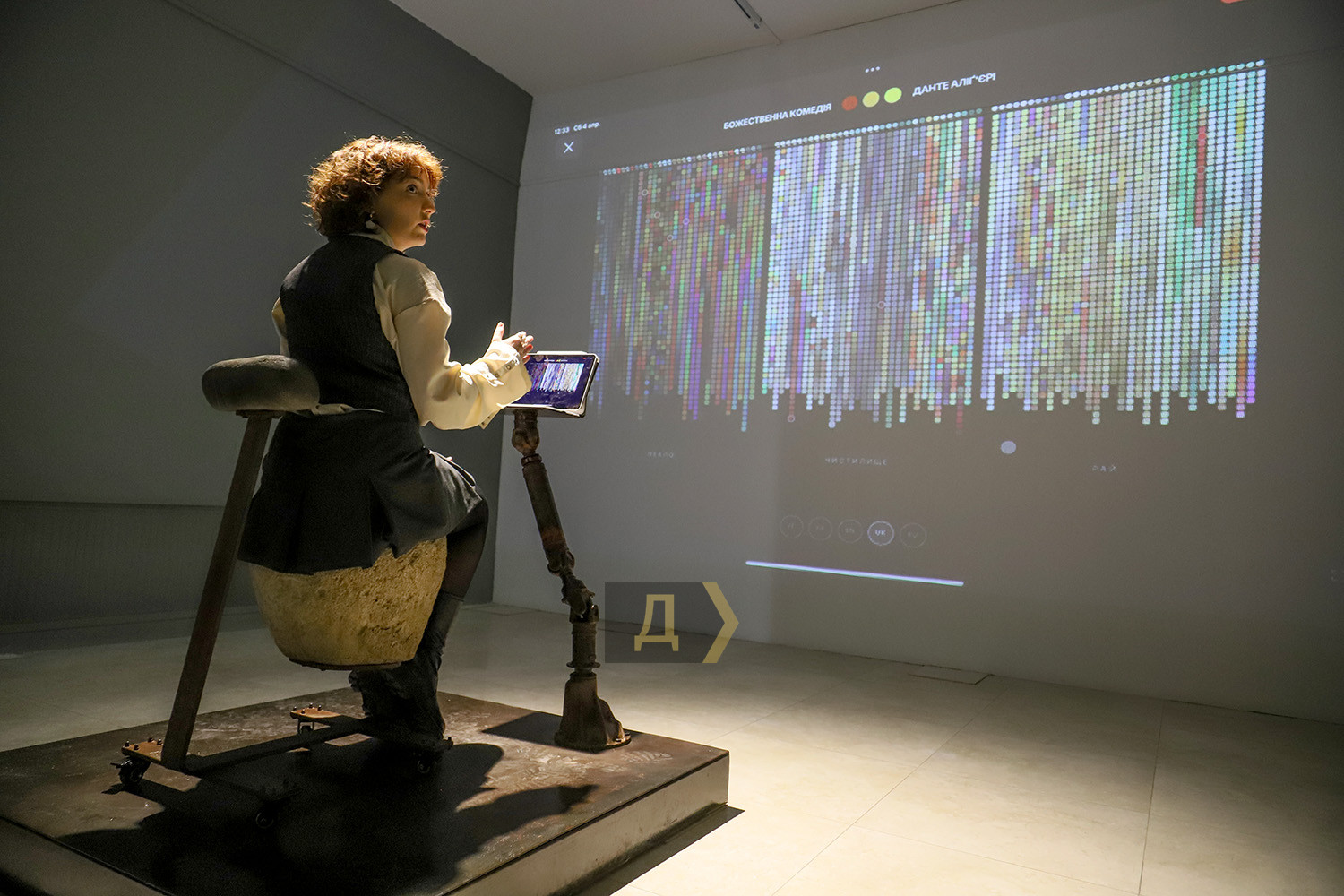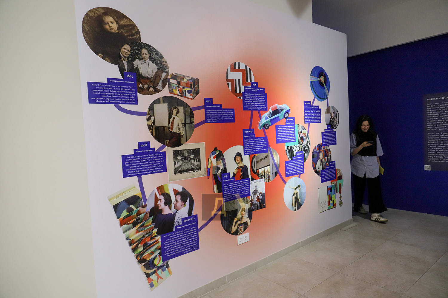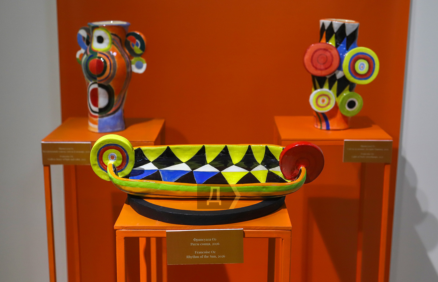 Видеоинсталляция от Михаила Ревы и платье «Код»: в Одессе отмечают 140-летие Сони ДелонеВыставкой «Ода Соне» Музей современного искусства Одессы до конца лета продолжает отмечать 140-летие известной французской художницы, знаменитой одесситки Сони Делоне. Перед тем была серия выставок, последовательно знакомивших публику с творческим наследием самой художницы. А теперь к проекту приобщились более 20 мастеров, от мэтров до первокурсниц, создавших оммаж многогранному творчеству Сони. Мода на Соню Делоне охватила творческую молодежь Одессы и не только, это ощущалось на многолюдном вернисаже, так что начнем с моделей одежды. Над ними (часто не без помощи искусственного интеллекта) поработали Владимир Уманенко, Татьяна Нестеренко, Катерина Билетина (корсет), Елена Жернова (худи с картиной на спине). Огромное панно, к которому приложил руки еще и молодой абстракционист Kit, шляпа, созданная при участии Анастасии Кирилиной, балетная пачка – все это обращается к форме круга, ведущей в Сонином наследии. Радужное солнце сияет сейчас в музейных залах вопреки трудным военным временам, кажется, его лучи выпаривают мрачное настроение… Мария Гончар, известная своими экспериментами с ИИ, разработала платье «Код», за основу которого взята «Притча» Тристана Тцары. Текст переведен на украинский язык и трансформированный в код Python. Это переосмысление поэтических платьев Сони Делоне, в свое время создаваемых ею именно с поэмами Тцары. Как мы уже знаем, художница делала первые аналоги лайтбоксов, по крайней мере, во Франции. Девочки-первокурсницы художественных вузов предложили свои работы в этом жанре, был даже конкурс, по итогам которого лучшим автором признали Елизавету Широкову. Но все эти работы интересные, стильные и сияющие, все привлекают внимание, собственно, это и является их миссией. Несколько работ самой Сони из коллекции МСИО вместе с семейными фото времен ее недолгого одесского детства можно увидеть на первом этаже музея. Тарелки «Сигнал», «Виндзор» и «Карнавал» вдохновили одесских керамисток. «Мне кажется, штук 50 эскизов родилось в процессе, — говорит куратор проекта Анна Мороховская. – В результате вы можете увидеть три серии тарелок: Infinity, «Счастье быть» и «Джаз». Формат, который выбрала Елена Жернова, как раз ближе к оммажу. Она изучала творчество Сони Делоне и пыталась, с одной стороны, повторить что-то, но и внести свое. Другие художницы, например, Франсуаза Оз, оттолкнулись от Сониных образов дальше. Есть перекличка, конечно, но самой Франсуазы здесь больше. Мы, сами того не ожидая, провели эксперимент и доказали, что разделяем с Соней Делоне ее стремление нести искусство в быт». Некоторые художники сподобились на небольшие персональные проекты в рамках общего. Так, Михаил Рева анонсировал не столько прямые аналогии с творчеством Сони Делоне, сколько взаимодействием между ней, ее мужем, художником Робером Делоне. Толчком к симультанизму, сопоставлению цветов, стало одеяльце из лоскутков ткани, сшитое Соней их сыну Шарлю. Графика Ревы обращается к мотивам детства, монохромные скульптуры, как ни странно, апеллируют к симультанности, достаточно взглянуть на то, как черный или красный цвет во фрагментах приобретает разные оттенки. Между прочим, именно так воспринимали Сонино творчество для еще черно-белого кинематографа, экр