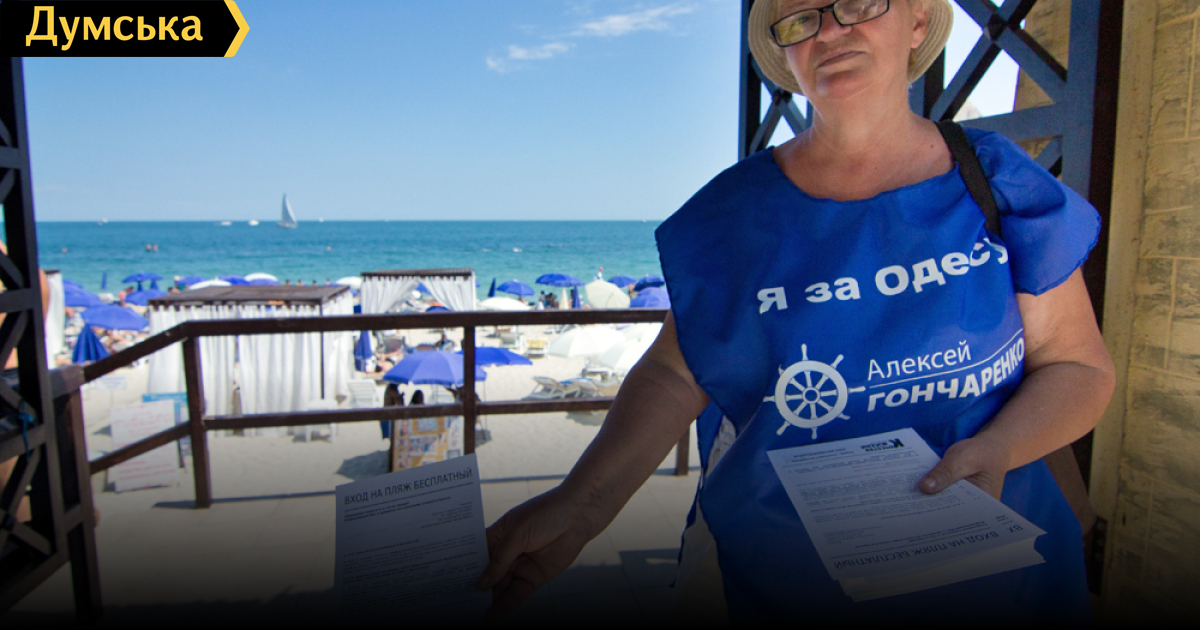 «Эту акцию мы проводим уже несколько лет. Каждый год, с конца июня, наши активисты выходят на пляжи Одессы и распространяют листовки с объяснением, что вход на любой пляж – бесплатный, — отмечает Алексей Гончаренко, — Это определено решением горсовета от 2007-го года. На обороте нашей памятки написан телефон нашей горячей линии, по которому любой одессит или гость города может обратиться за помощью при нарушении своих прав в части пользования городскими пляжами».