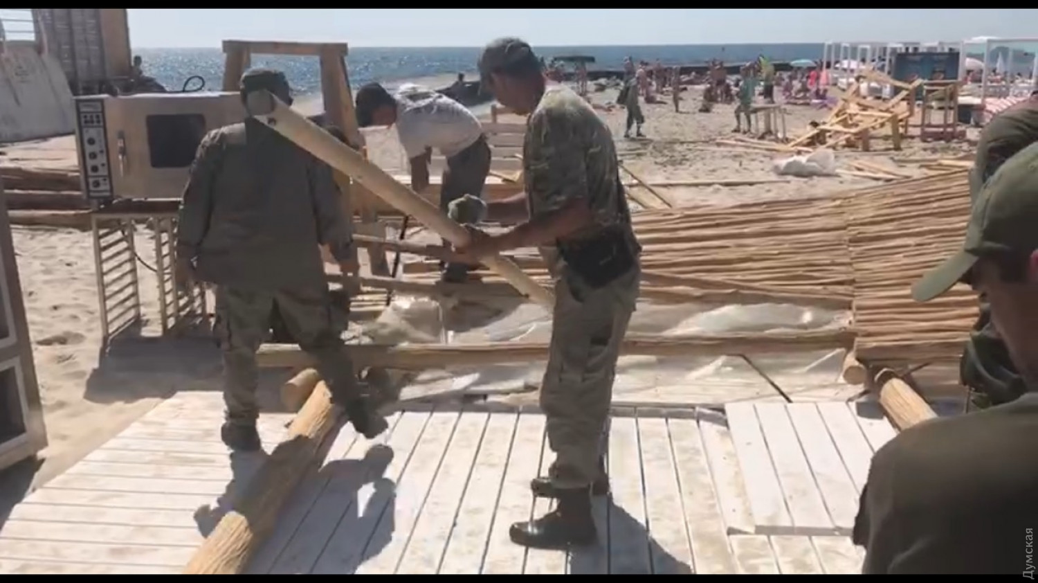 Пляжники против муниципалов: сотрудники мэрии разобрали строения на пляже «Чайка»Набирающий обороты туристический сезон в Одессе в нынешнем году сопровождается постоянным скандалами, причем их участниками становятся не только отдыхающие и традиционно скандальные бич-бои, любящие указывать клиентам, где и как им отдыхать и что при этом делать. На сей раз в эпицентр событий попали сотрудники департамента муниципальной безопасности. Как сообщил «Думской» управляющий пляжным комплексом White Beach club Odessa (10-я станция Большого Фонтана) Олег Павленко, утром на территорию пляжа ворвались около четырех десятков людей в камуфляже, представляющих департамент муниципальной безопасности и КП «Муниципальная варта». Ими руководил заместитель директора предприятия Сергей Мирошниченко. «Совершили хулиганские действия, вмешались в чужую хозяйственную деятельность, уничтожили имущество, не предоставляя никаких соответствующих документов. В то же время у нас есть полный пакет документов, удостоверяющих права на ведение здесь предпринимательской и хозяйственной деятельности, в частности, договор аренды на два года, заключенный в августе 2017 года», — заявил предприниматель. Кроме того, он указал, что по соседству, в десятке метров на том же пляже установлено капитальное строение, по которому существует решение исполкома о демонтаже (от 29 июня 2017 года). «Тем не менее, оно остается нетронутым и продолжает стоять, мы же, предприниматели, приносящие в бюджет города порядка полумиллиона гривен в год за аренду, чем-то помешали муниципалам», — отметил Олег Павленко. От себя добавим, что предприниматель указал на пляжный комплекс ООО «Форекстин», который, несмотря на наличие решения Верховного Суда, продолжает незаконно занимать значительную долю пляжа. В настоящее время пляжный комплекс White Beach club Odessa продолжает работу и восстанавливает демонтированные строения. В мэрии действия муниципальных стражников назвали правомерными и законными. Как сообщил нам помощник курирующего вице-мэра Николай Покровский, департамент муниципальной безопасности, как орган, который следит за исполнением Правил благоустройства города неоднократно направлял предписания владельцу, чтоб он сам демонтировал временные сооружения. Владелец отказывался подписывать предписания. Поэтому, согласно решению исполнительного комитета, которым департаменту предоставлены полномочия по демонтажу объектов, нарушающих Правила, сотрудники департамента своими силами снесли объекты. «У них есть только договор аренды с управлением инженерной защиты. Согласно которому на объекте могут быть установлены только зонты и топчаны. Управление торговли разрешений на установку временных сооружений не выдавало, однако арендатор начал строительство временных сооружений на данной территории», — сообщил Николай Покровский. К слову, отметим, что на аппаратном совещании 14 июня, на котором был уволен директор департамента инженерной защиты территории города и развития побережья Геннадий Мирошниченко, чиновник сообщил, что ООО «Амбер-груп» (арендатор пляжа) произвел водолазные работы по очистке дна, соблюдает все требования по предоставлению бесплатных услуг на 30% территории пляжа, однако паспорт на открытие и функционирование пляжа со структурой подписан не был. При этом соседи по