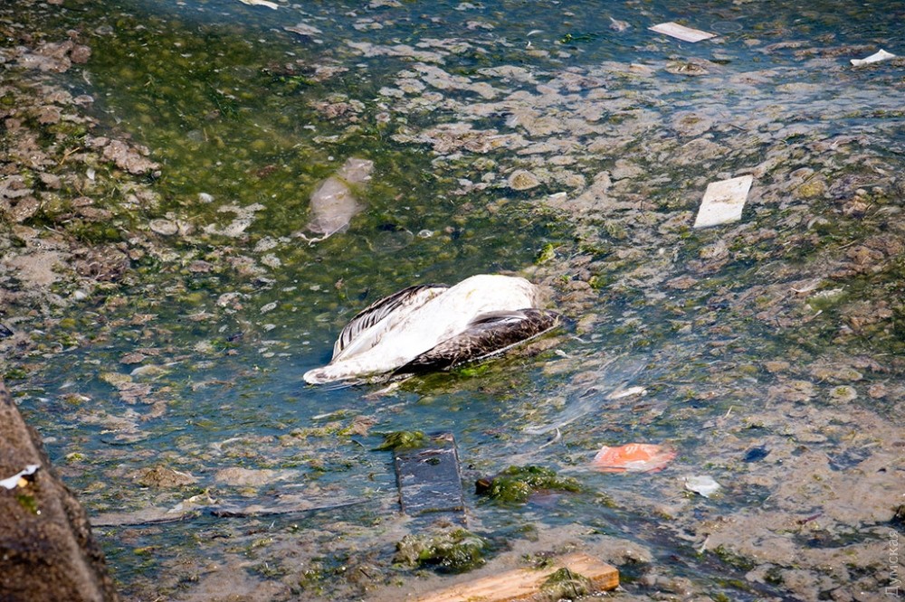 С наветренной стороны под траверсы волна собирает огромное количество грязи. Кроме жуткой коричневой пены, водорослей и пластиковой тары, здесь попадаются даже трупы чаек.