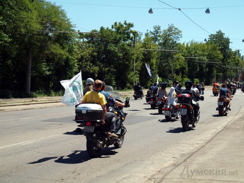 В 12:00 байкеры, в сопровождении эскорта ГАИ, стартовали со стадиона «Одескабель», что на Николаевской дороге, совершили «круг почета» по поселку Котовского и направились в центр города. От Пересыпского моста они поднялись вверх по спуску Маринеско и Софиевской, а затем выехали на Дерибасовскую. Здесь байкеры устроили 40-минутную остановку — на людей посмотреть, себя показать, выпить чего-то прохладительного и устроить фотосессию.