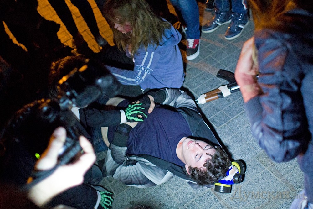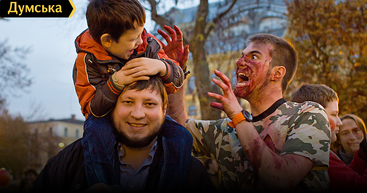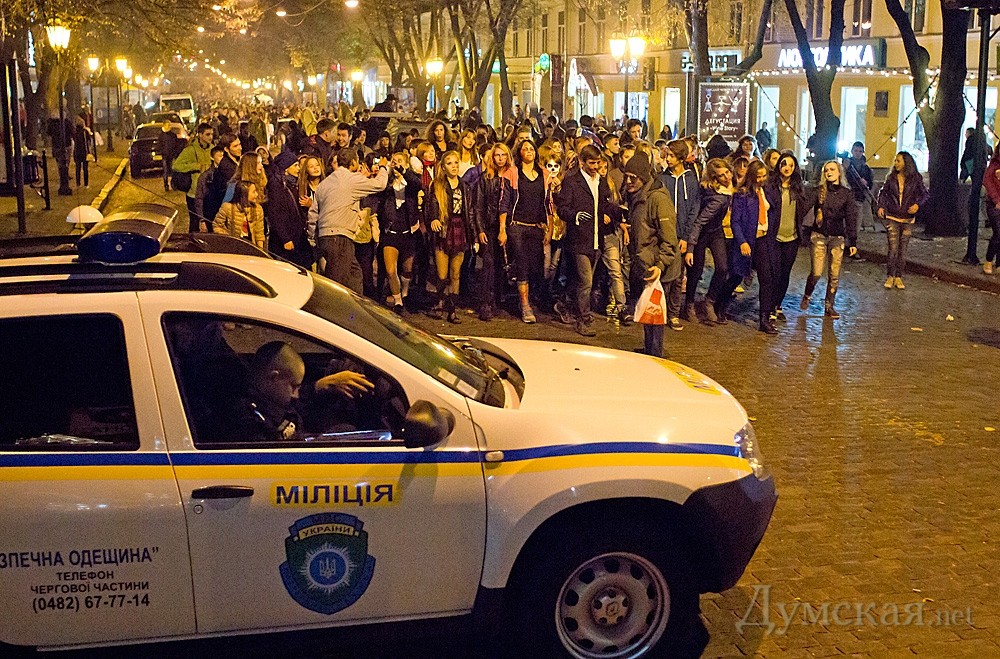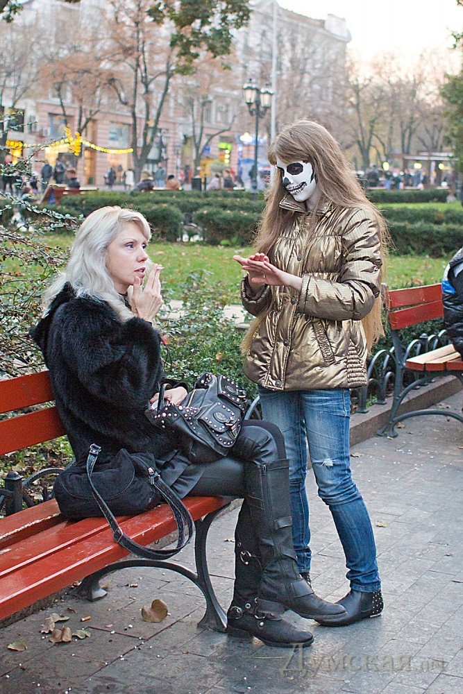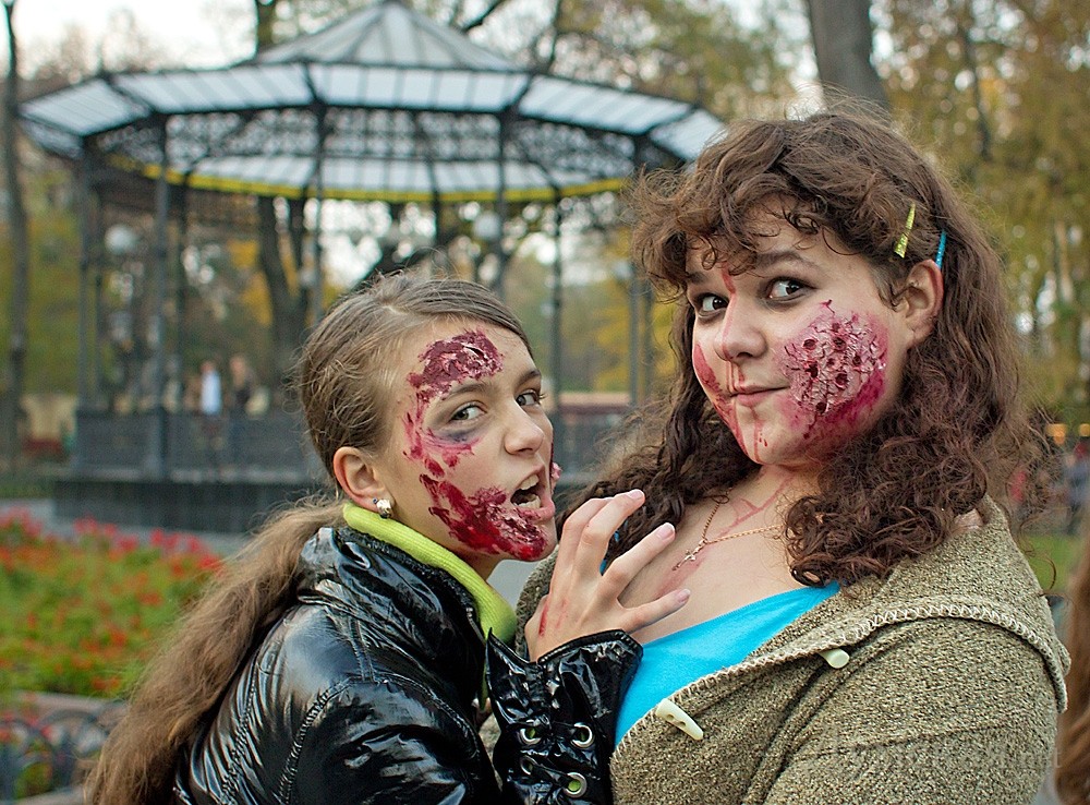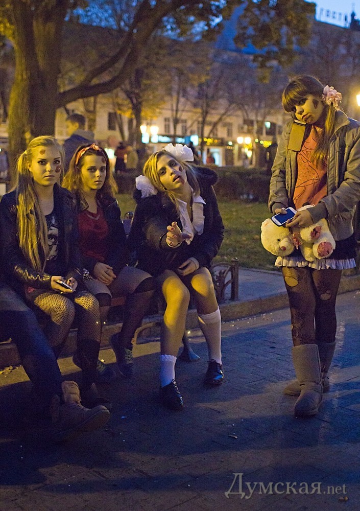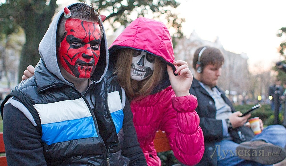 В преддверии Хэллоуина, западноевропейского и североамериканского праздника, который очень полюбился жителям постсоветских республик, более ста молодых людей, загримированных под мертвецов, зомби и другую нечисть, устроили в центре Одессы парад. Восставшие мертвецы прошлись по Дерибасовской и Приморскому бульвару до памятника Дюку, где состоялось небольшое зомби-пати. В пути группу зомби, как и в прошлом году, сопровождали парни, одетые в военную форму, пытавшиеся «остановить» мертвецов. В районе Оперного театра их благополучно «съели». Причем псевдомертвецы разошлись так, что едва не раздавили одного из борцов с нечистью. После того, как толпа зомби схлынула, бедняга еще минуты две хрипел и уехал на карете скорой помощи. Как рассказал «Думской» организатор второго зомби-парада Артем Скадивалов, с каждым годом «мертвечиной» интересуется все больше народу: «Мы провели опрос в социальных сетях и получили результаты, согласно которым 70% людей в возрасте от 14 до 20 лет в душе мечтают о зомби-апокалипсисе. Подобный парад поможет им почувствовать, что это такое». Фото: Александр Гиманов СМЕРТЬ РОСІЙСЬКИМ ОКУПАНТАМ! Помітили помилку? Виділяйте слова з помилкою та натискайте control-enter |