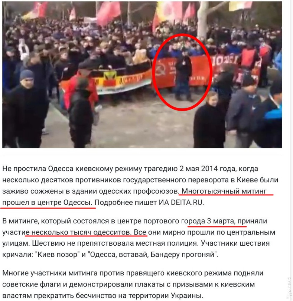 Антифейк По одесским улицам прошлись покойники: российские пропагандисты раскручивают машину тотальной дезинформацииРоссийские пропагандисты продолжают находиться в параллельной реальности. Поток информационных помоев, которые они заливают в головы россиян, все меньше связан с реальностью. Пропаганда формирует для россиян виртуальную реальность, никак не связанную с происходящими событиями. Например, помойка под названием «телеграм канал НМ ДНР» рассказала о том, что вчера Вооруженные силы Украины якобы нанести удар ракетой «Точка-У» по штабу «Азова» в Мариуполе. Также, по их сообщениям, «генерал Юрий Соболь» якобы получил смертельное ранение в перестрелке с «Азовом». Эти, с позволения сказать, «новости» весь вчерашний день муссировали и даже «анализировали» все остальные российские инфопомойки, вплоть до «Раша Тудэй» и «Риа Новости». Одесситы, в свою очередь, могут с большим интересом узнать, что 3 марта в нашем городе «прошла» многотысячная демонстрация под красными и имперскими флагами. С лозунгами «Киеву позор», ага. Естественно, эта, прости Господи, «новость» тоже стала темой номер один для «аналитики». Для убедительности ее даже сопроводили мутной фотографией восьмилетней давности — времен приснопамятной «Русской весны». Но если хорошо присмотреться, можно увидеть, что вчера по улицам города во главе колонны прошелся некто Валентин Дорошенко, который, к счастью, покинул этот мир четыре года назад. Цель таких неуклюжих манипуляций очевидна — демотивировать украинских солдат и посеять сомнения в одесситах у жителей других регионов. Увы, пропагандисты настолько далеки от украинских реалий, что не могут даже представить: кроме смеха, такие фейки не вызывают никаких эмоций. Но есть и еще один побочный эффект. Информационный пузырь виртуальной реальности невозможно удержать, если не перекрыть россиянам любые источники альтернативной информации. Поэтому Twitter там уже отключен, отключение Youtube и Facebook, по всей видимости, вопрос времени. А там и полная информационная изоляция страны от внешнего мира не за горами. СМЕРТЬ РОСІЙСЬКИМ ОКУПАНТАМ! Помітили помилку? Виділяйте слова з помилкою та натискайте control-enter |