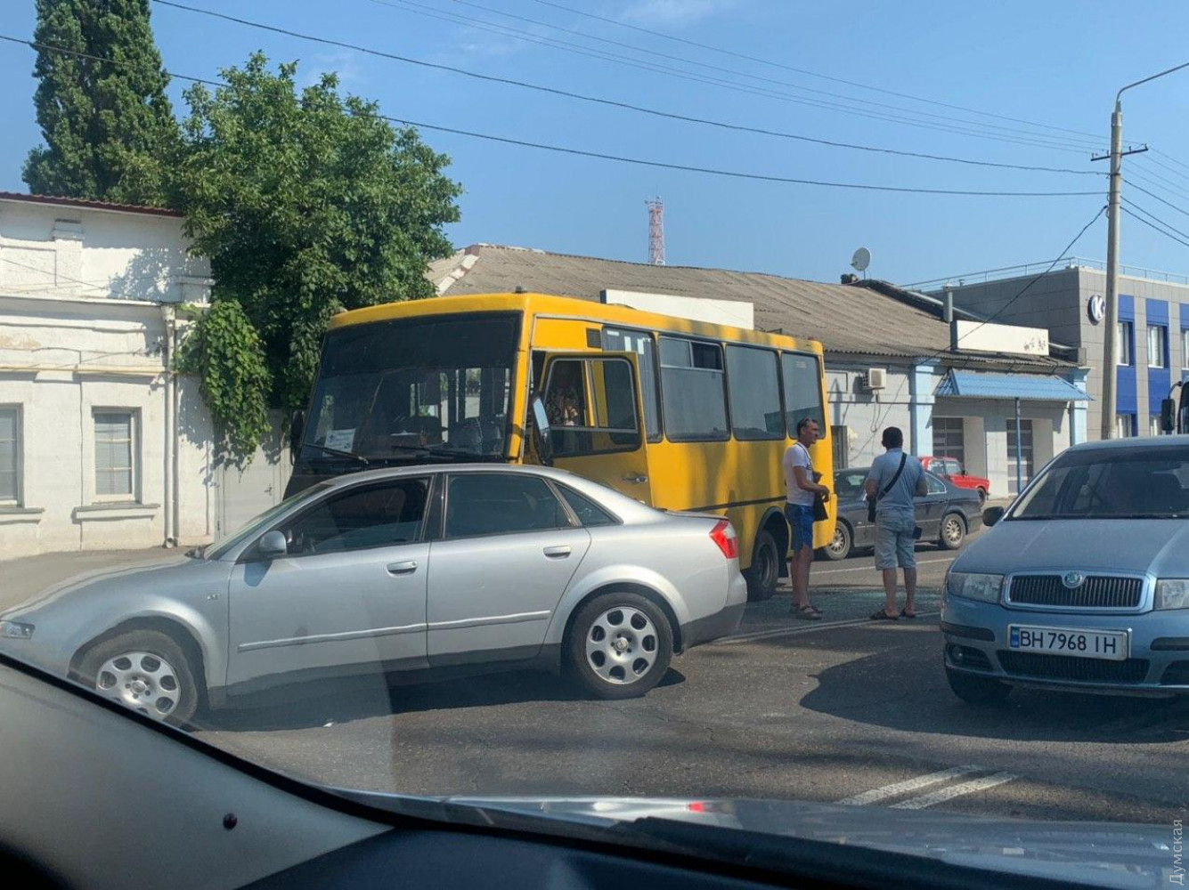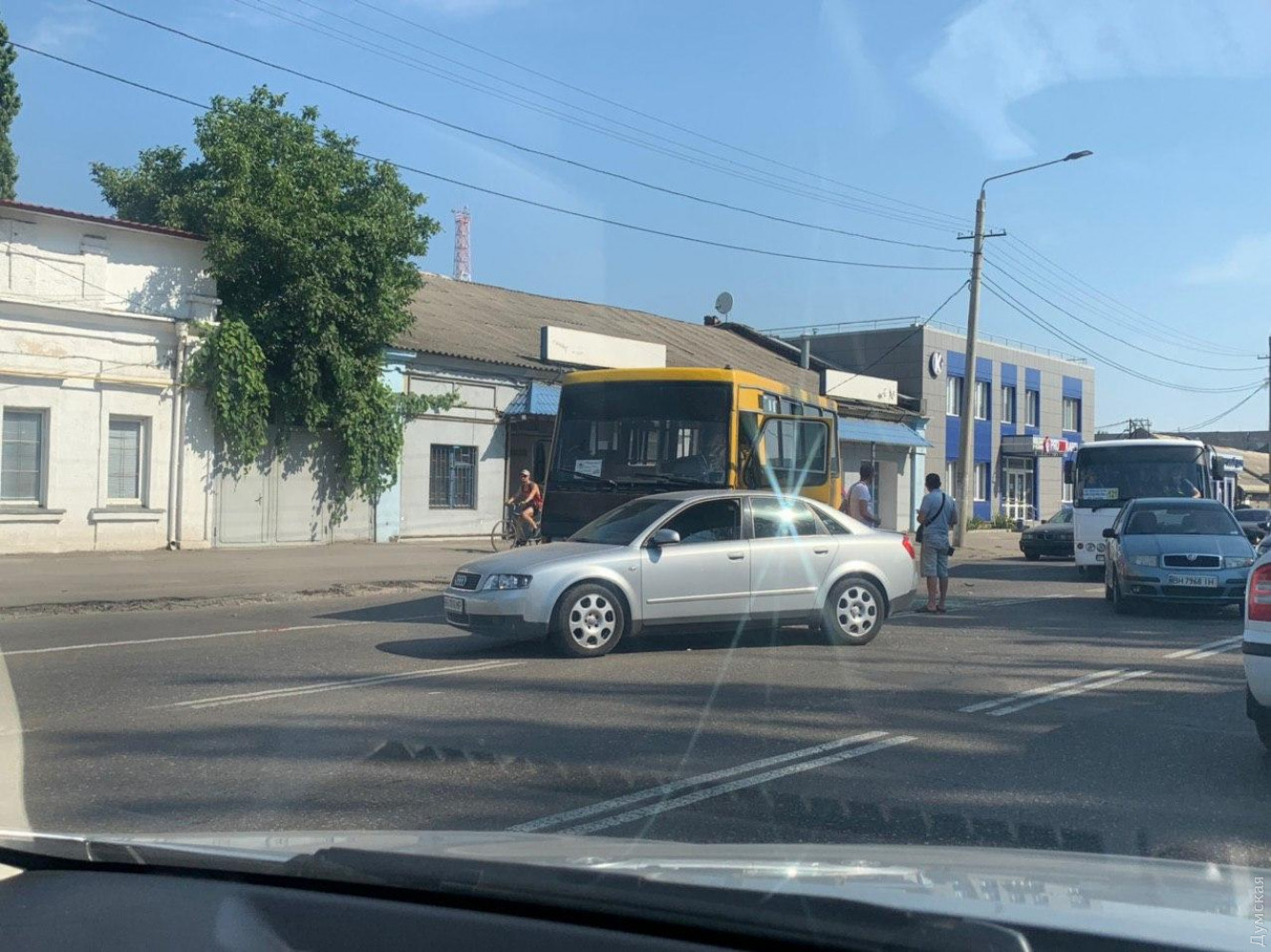 Маршрутка №168 столкнулась с легковым Audi на Николаевской дороге возле завода «Одескабель». Об этом сообщают очевидцы ДТП. У маршрутки повреждена передняя левая часть кузова – разбиты бампер и крыло, смята дверь водителя. Судя по всему, ДТП произошло, когда водитель Audi, не рассчитав дистанцию до автобуса, попытался перестроиться в соседний правый ряд. Из-за инцидента по пути с поселка Котовского в сторону центра выстроилась большая пробка. Информации о пострадавших в данный момент нет. На месте работают патрульные полицейские. СМЕРТЬ РОСІЙСЬКИМ ОКУПАНТАМ! Помітили помилку? Виділяйте слова з помилкою та натискайте control-enter |