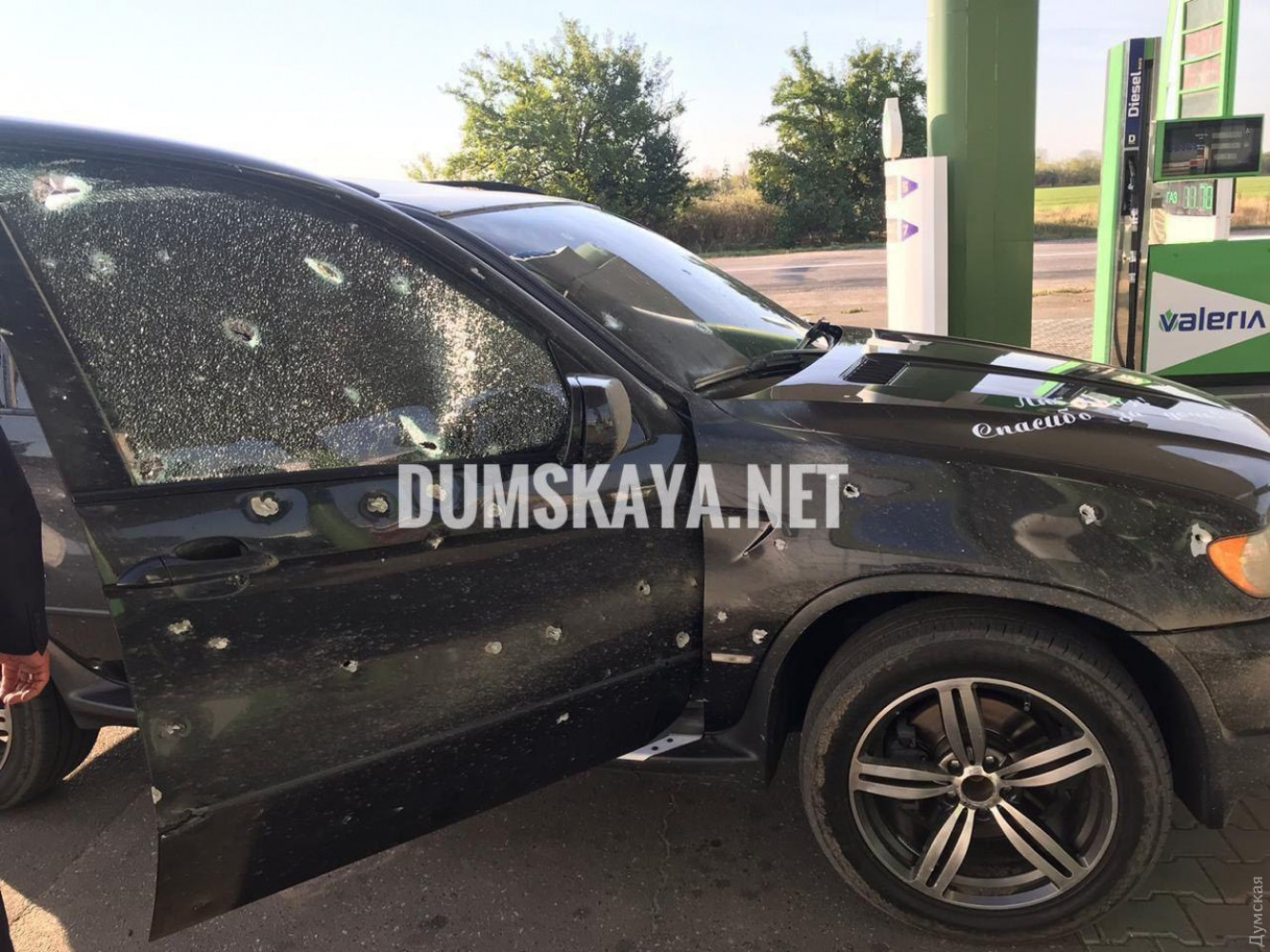 Не стреляли. А в машину попали осколки и шарики взрывного устройства.