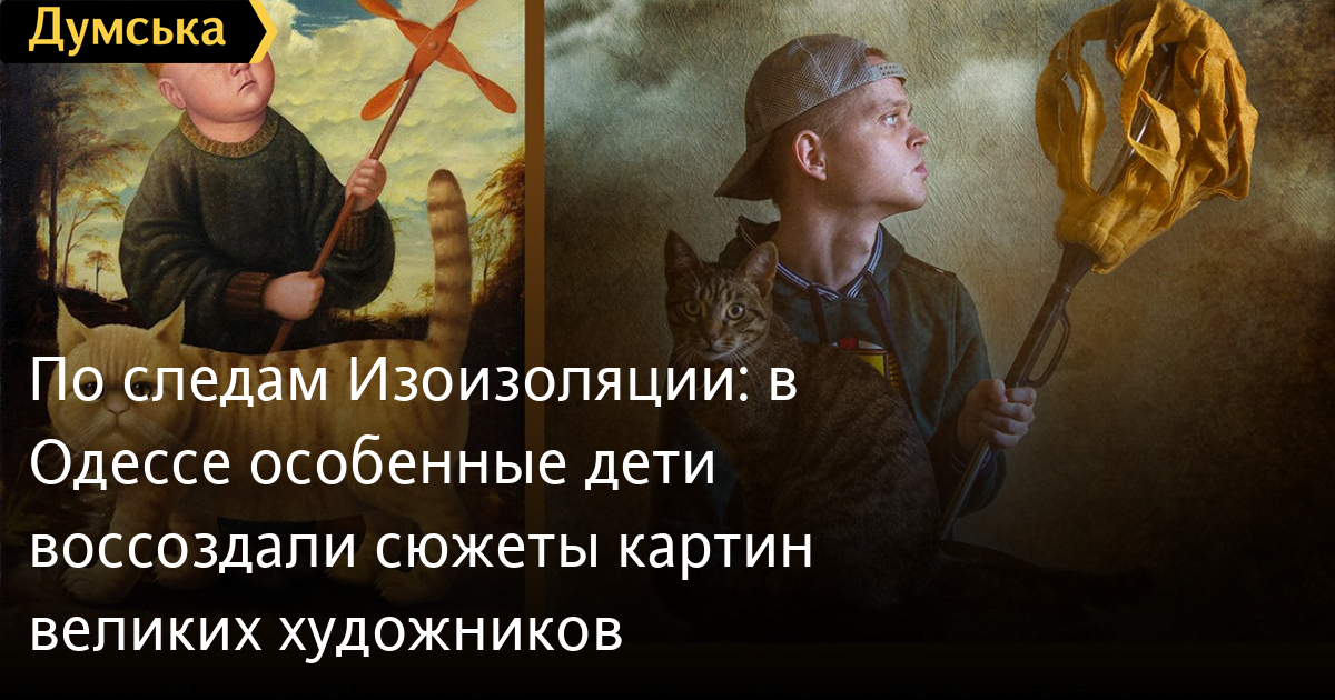 По следам Изоизоляции: в Одессе особенные дети воссоздали сюжеты картин великих художниковМеждународное движение по воссозданию собственными силами произведений изобразительного искусства продолжает находить новых поклонников. Свое видение шедевров Пикассо, Серова, Репина и других великих живописцев представила на суд зрителей Одесская областная организация Национального союза фотохудожников Украины. Участниками и соавторами проекта, который получил название «Открыть в себе Леонардо», стали дети с ментальной инвалидностью, подопечные общественной организации «Фонд «Особлива молодь». Как отмечают в фонде, фотопроект стал своего рода арт-терапией для его участников. «Ох, этот зуд творчества! Пока мы готовили свои фотокартины, наше воображение развилось в разы. У наших мам открылись таланты к композиции и построению кадра. Из «ничего» они научились создавать фон, обнаружив в себе талант декоратора. А наши модели научились передавать образы, явив миру свою артистическую натуру и большое терпение», — отмечают организаторы фотопроекта. СМЕРТЬ РОССИЙСКИМ ОККУПАНТАМ! Заметили ошибку? Выделяйте слова с ошибкой и нажимайте control-enter |