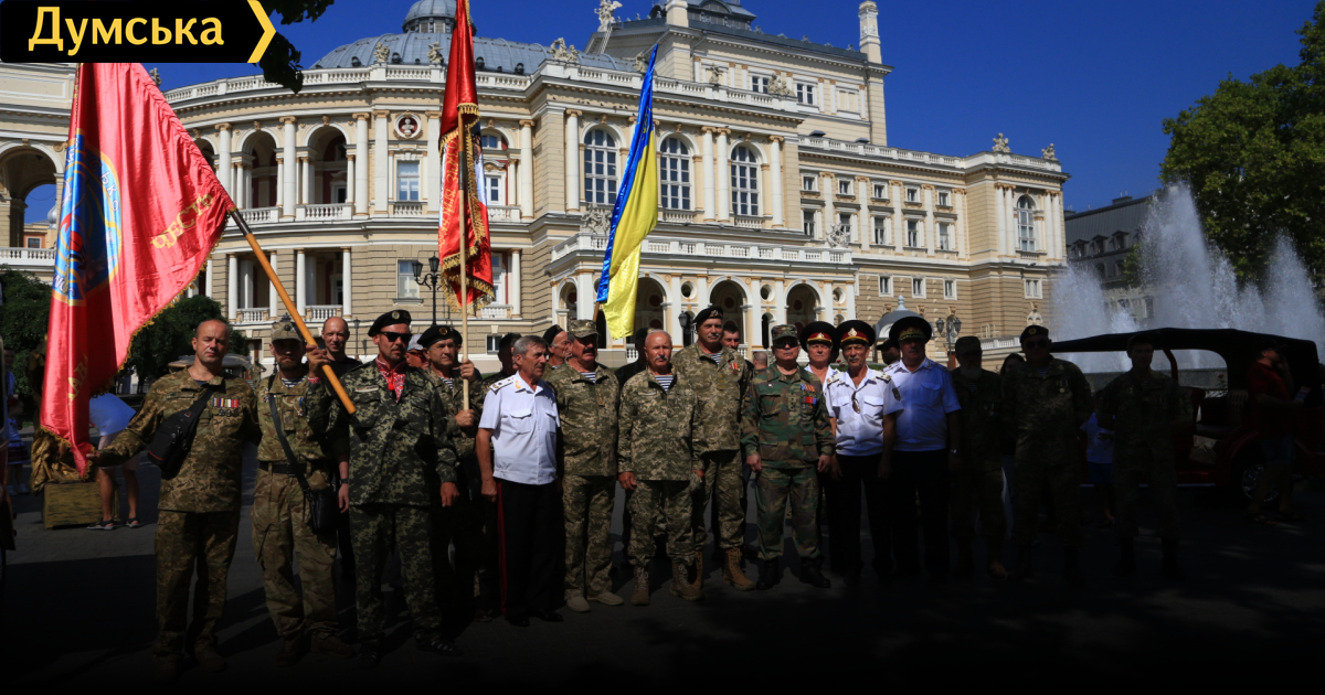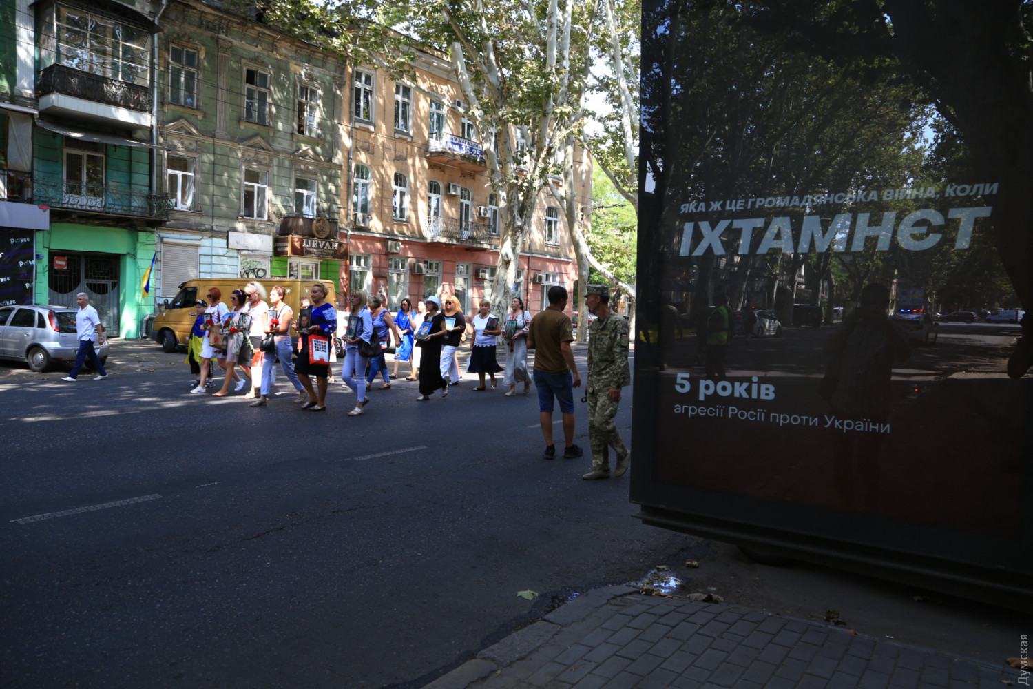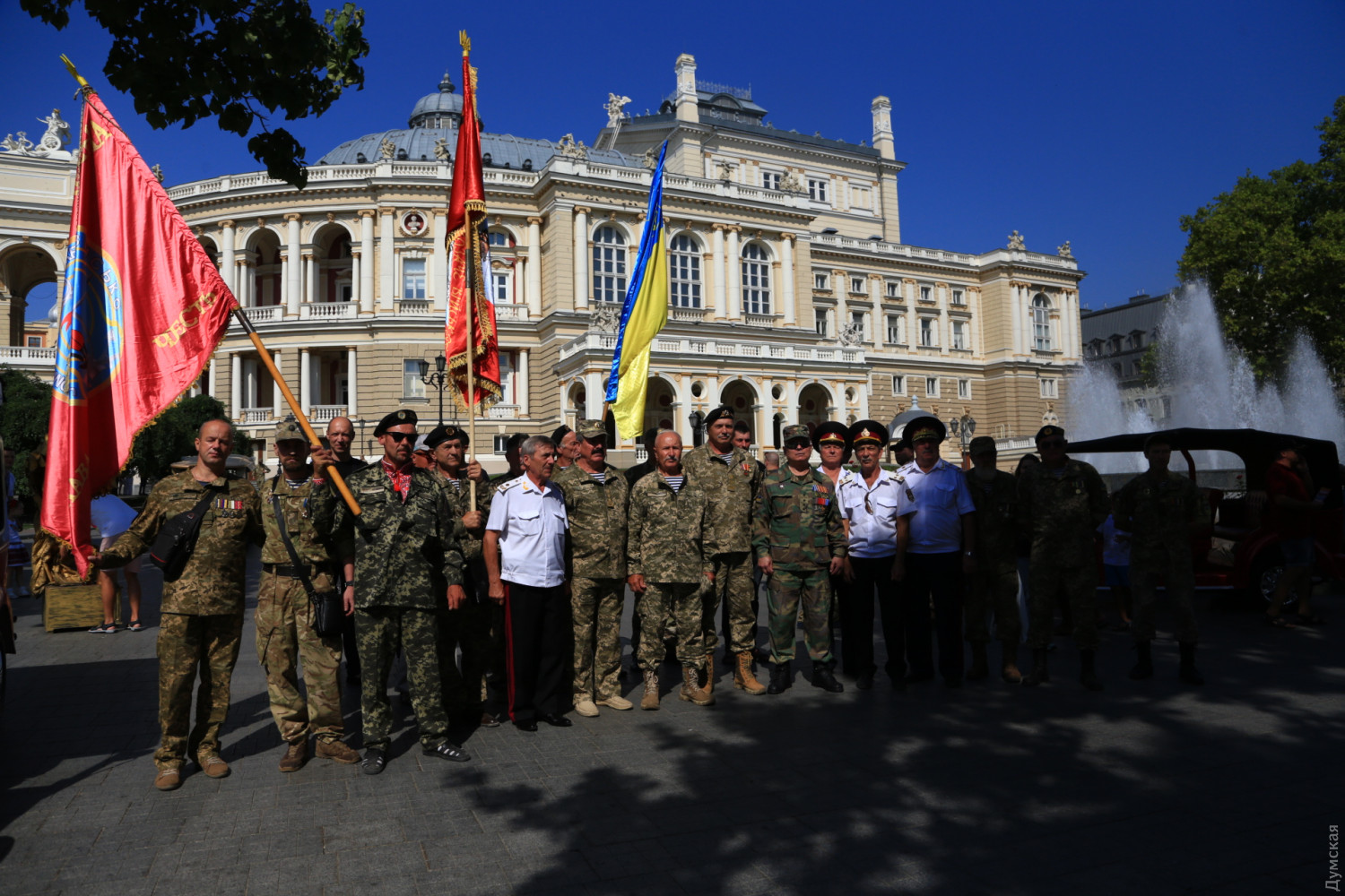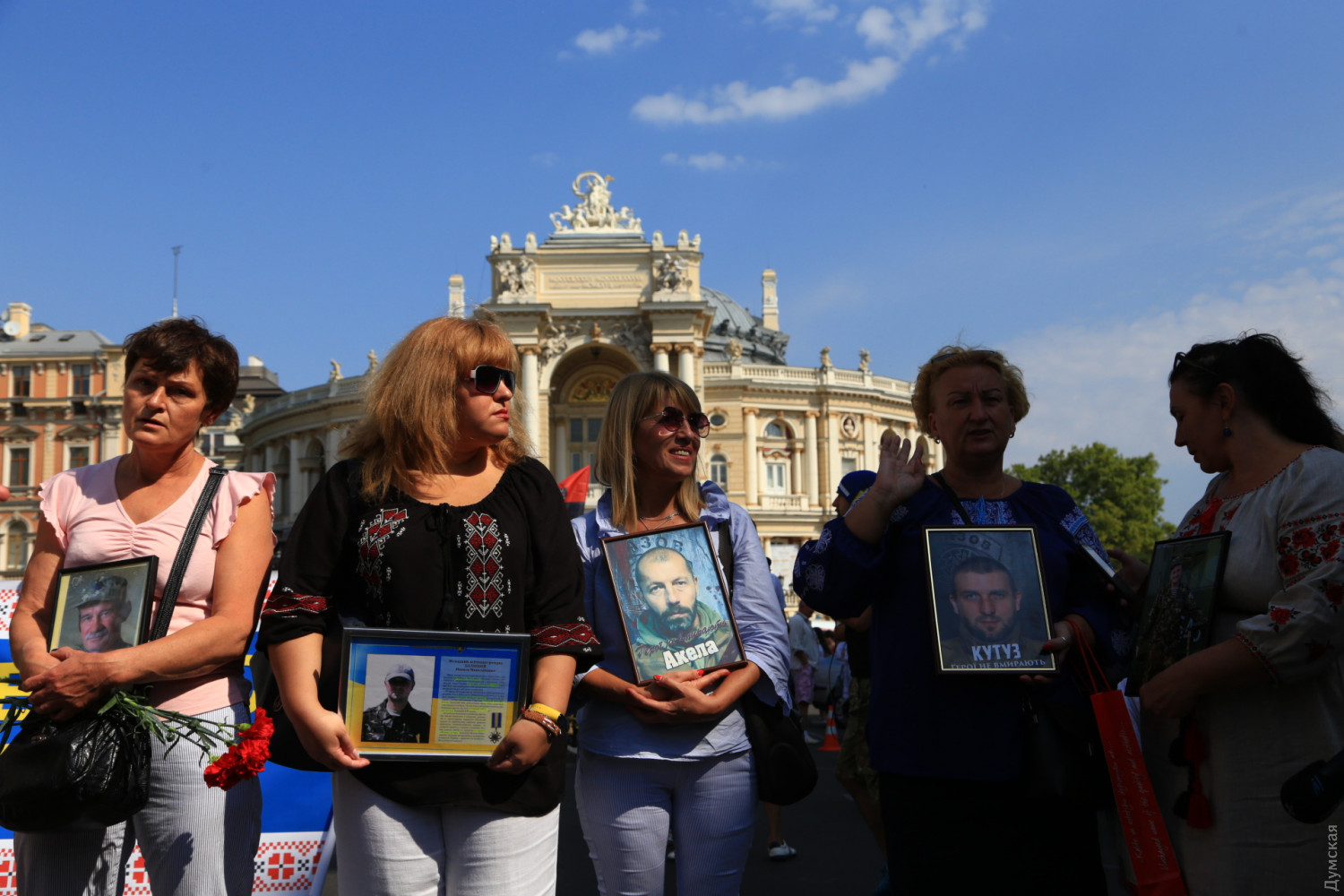 Более трех сотен представителей одесских ветеранских организаций, черноморского казачества, матерей погибших в зоне АТО и ООС и простых одесситов прошли по улице Ришельевской, Куликовому полю, завершив шествие митингом возле здания ОГА.