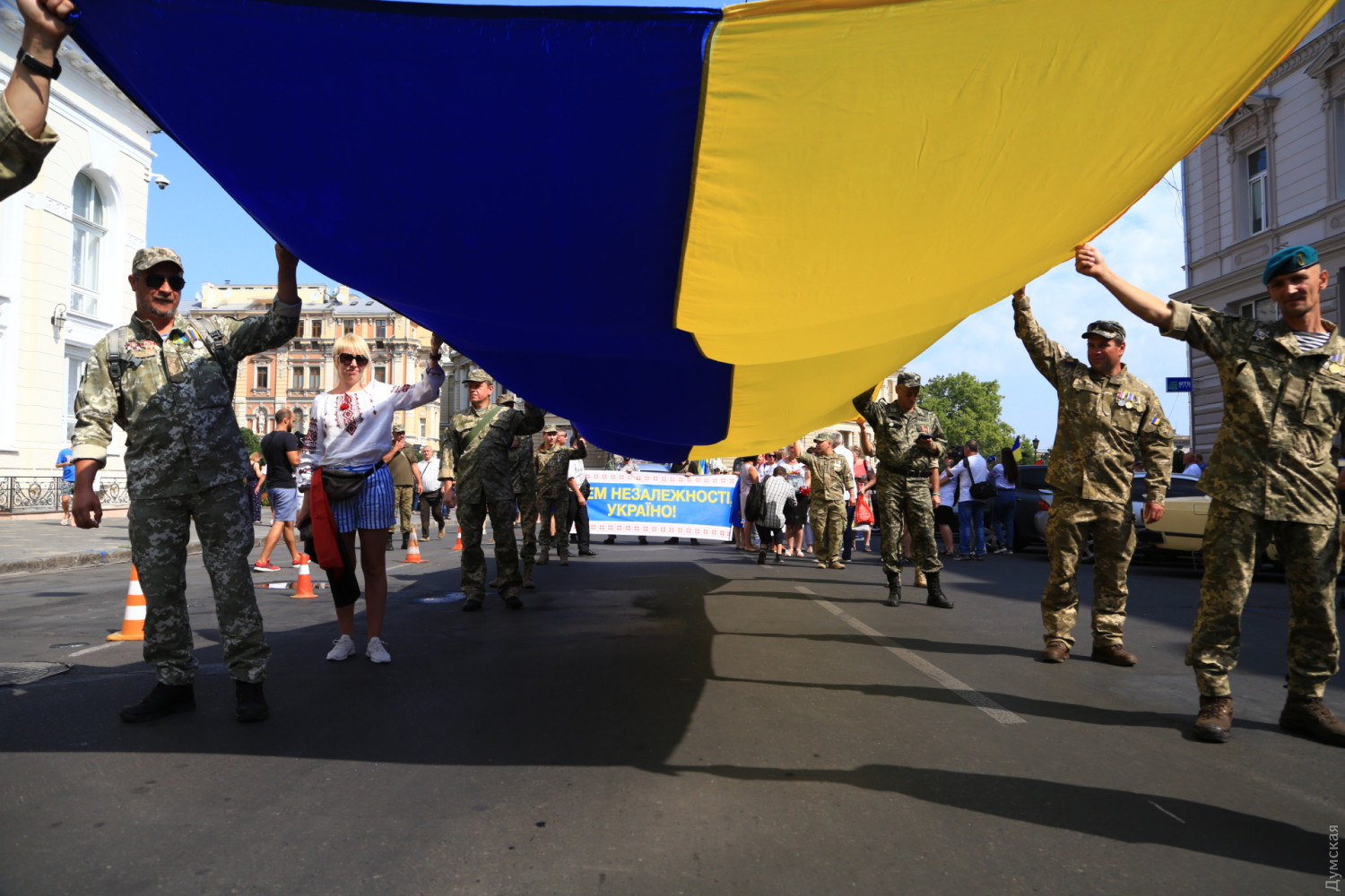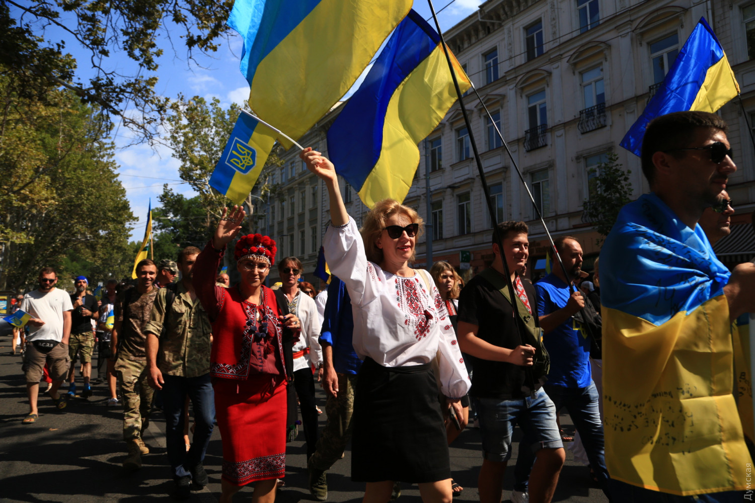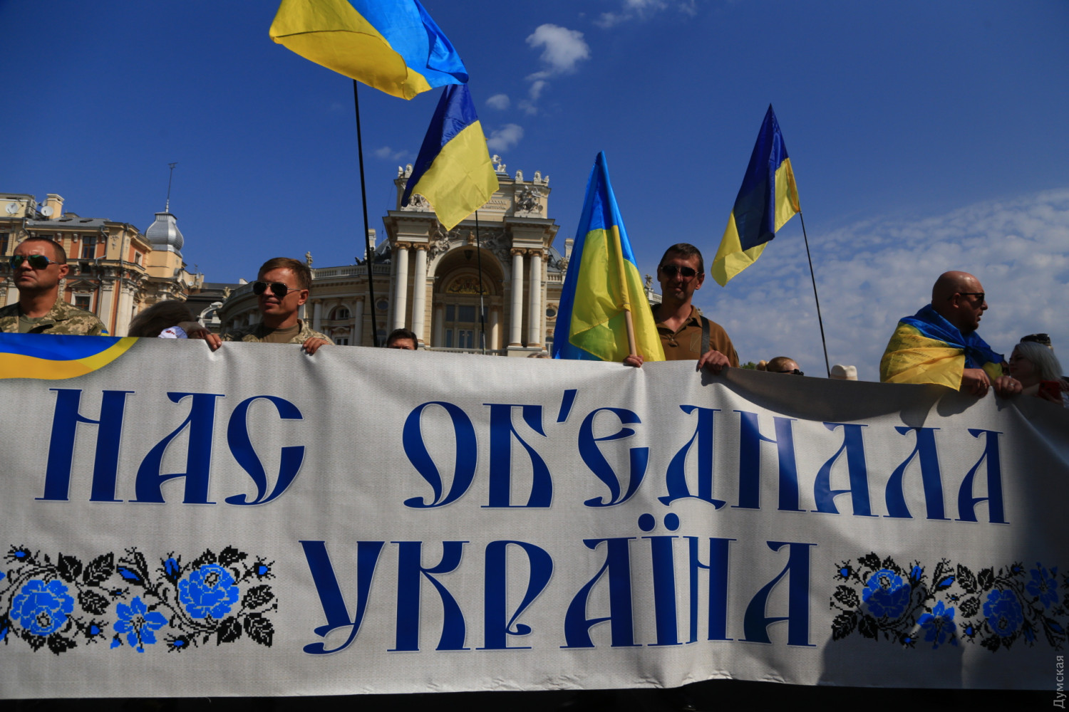 В Одессе в 11 часов с Театральной площади стартовал Марш защитников и патриотов, посвященный 28 годовщине Независимой Украины.