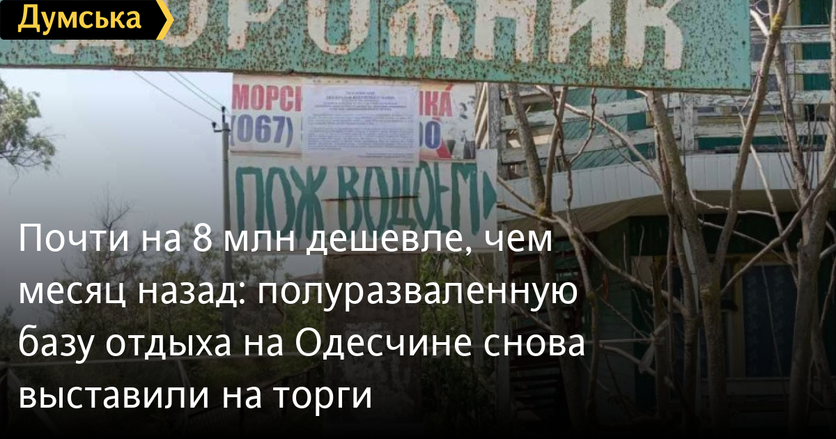 Майже на 8 млн дешевше, ніж місяць тому: напівзруйновану базу відпочинку на Одещині знову виставили на торгиБазу відпочинку «Дорожник» у селі Шабо Одеської області знову намагаються продати з молотка. Судячи з інформації з електронної системи «Прозорро.Продажі», цього разу стартову ціну знизили майже на 8 млн гривень. Очевидно, місяць тому на першому аукціоні об'єкт не викликав захоплення — за 35,7 млн гривень охочий придбати напівзруйновані корпуси та непридатну техніку не знайшлося. Тому організатори повторно виставили базу зі «знижкою» — за 28,5 млн грн. Як писала «Думська», комплекс розташований у Шабівській громаді Білгород-Дністровського району і належить дочірньому підприємству «Одеський облавтодор». Він включає 18 будівель загальною площею понад 7 тисяч кв. м на ділянці у 2,73 га. До складу входять спальні корпуси, їдальня, клуб, гаражі, гуртожиток та інші об'єкти, ступінь зносу яких становить 100%. Також до лоту включено різне обладнання: дизельна станція, кондиціонери, пральна та посудомийна машини, трансформатори, комп'ютер. Все це, за інформацією з аукціонної документації, непридатне до експлуатації. Продаж відбувається в рамках процедури санації у справі про банкрутство ДП «Одеський облавтодор». Вторговані кошти спрямують на погашення частини боргів підприємства та спробу уникнути його ліквідації. Раніше ексголова регіонального відділення Фонду держмайна в Одеській і Миколаївській областях Олександр Славський у коментарі «Думській» говорив, що стартова ціна в 35,7 млн гривень, встановлена за оцінкою, може бути зависокою для поточних ринкових умов. До того ж об'єктом продажу є лише будівлі, а не земельна ділянка, тобто покупець отримає лише право оренди землі. «Перед виставленням об'єкта на торги була проведена оцінка, тому на першому аукціоні не можуть виставити менше за оціночну вартість. Якщо з першого разу не викуплять, на другому аукціоні, ймовірно, ціна опуститься вдвічі», – пояснював він. У бажаючих купити «Дорожник» є час до 25 серпня, щоб подати заявки. Повторний аукціон відбудеться вже 26-го числа. СМЕРТЬ РОСІЙСЬКИМ ОКУПАНТАМ! Помітили помилку? Виділяйте слова з помилкою та натискайте control-enter |