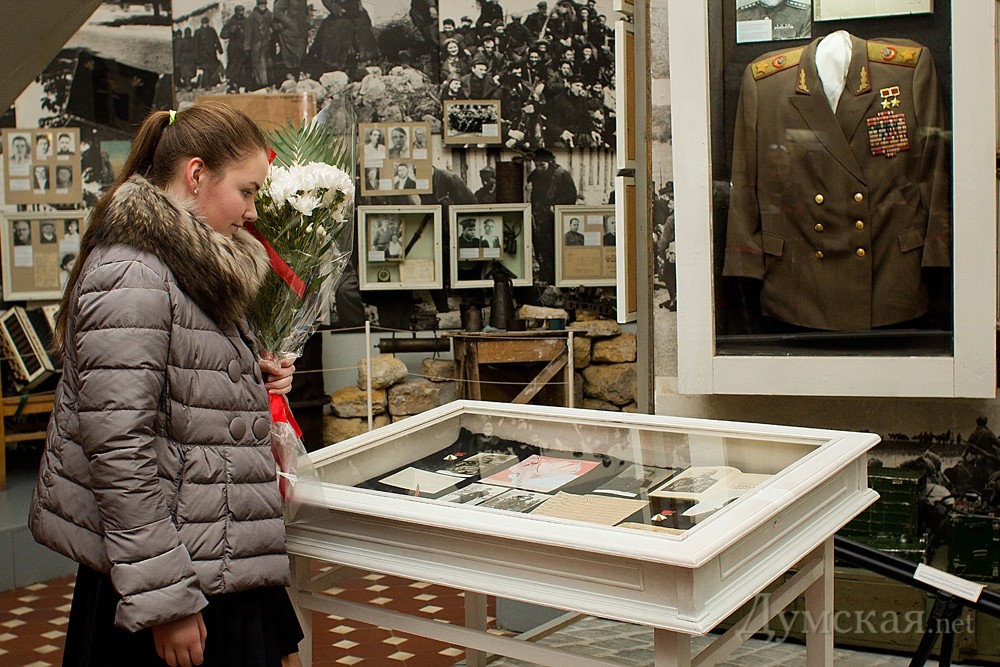 «Победы немеркнущий свет»: в одесском музее открылась выставка военных фотографий и документовСегодня в Одесском краеведческом музее открылась выставка, посвященная 69-й годовщине освобождения нашего города от фашистов. Открытием выставки коллектив музея решил отметить сразу несколько знаменательных дат, которые отмечаются в этом году, — 115 лет со дня рождения маршала Малиновского, 110 лет со дня рождения дважды героя Советского союза, генерала Плиева. Автор экспозиции — заведующая отделом «Одесский край» в годы Великой Отечественной войны Лилия Эзау. Выставка построена на материалах музея, многие из которых не вошли в стационарный показ. Это фотографии, документы, периодические издания, бытовые предметы, а также личные вещи и переписка Малиновского, Плиева и командира 248-й стрелковой дивизии 5-й ударной армии 3-го Украинского фронта, Почетного гражданина Одессы Николая Галая. Офицеры именно его военной части подняли флаг Победы над Одесским оперным театром в 1944 году. Вместе с наградными грамотами, мундиром Малиновского и военными фотографиями здесь выставлены и необычные экспонаты. К примеру, письмо школьника, датированное 10 апреля 1945 года, с благодарностью маршалу Малиновскому за освобождение Одессы. Экспозиция «Победы немеркнущий свет» открыта до 10 мая. Завтра в музее пройдет научно-практическая конференция, посвященная Дню освобождения Одессы. Автор Александр Гиманов СМЕРТЬ РОСІЙСЬКИМ ОКУПАНТАМ! Помітили помилку? Виділяйте слова з помилкою та натискайте control-enter Новини по цій темі: 2 березня 2022: «Мы будем защищать наш город, оборонять его на каждом квартале»: Труханов дал интервью американским Vice news 23 грудня 2021: Командный пункт 411-й батареи превратят в музей (фото) 24 листопада 2021: Одесский памятник авиаторам Второй мировой: необычный ракурс (фотофакт) 17 листопада 2021: В Одессе похоронили освободителя города от румынско-немецких оккупантов: в живых осталось всего двое (фото) |