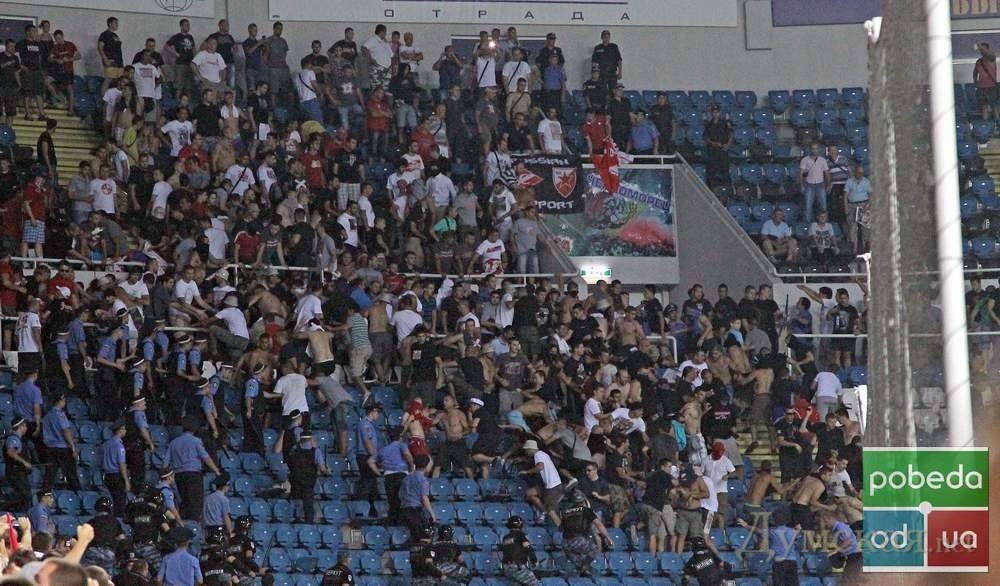 Побоище на одесском стадионе: избитого болельщика выписали из больницы (видео драки)Информация о серьезных травмах — переломе ребер и разрыве селезенки, — якобы полученных болельщиком во время массовой драки на матче «Черноморец» -«Црвена Звезда», не подтвердилась. Как сообщили «Думской» в скорой помощи, житель Овидиополя действительно обратился в скорую после драки с подозрением на перелом ребер. «Его привезли в областную больницу, но диагноз не подтвердился. От госпитализации он отказался», — сказал ответственный врач городской станции скорой помощи. В то же время, гендиректор ФК «Черноморец» Сергей Керницкий уточнил «Думской», что парень получил ушиб грудной клетки и утром был выписан из больницы. Что касается информации о переломах ребер и разрыве селезенки, о чем гендиректор «Черноморца» сообщил сразу после драки в интервью изданию «UA.Футбол», Керницкий объяснил, что это был предварительный диагноз, поставленный врачами скорой помощи. Вместе с тем, как сообщили в милиции, за нарушение общественного порядка уже не на стадионе задержали двоих граждан. В отношении одного из них составлен админпротокол, со вторым проведена беседа профилактического характера. СМЕРТЬ РОСІЙСЬКИМ ОКУПАНТАМ! Помітили помилку? Виділяйте слова з помилкою та натискайте control-enter |