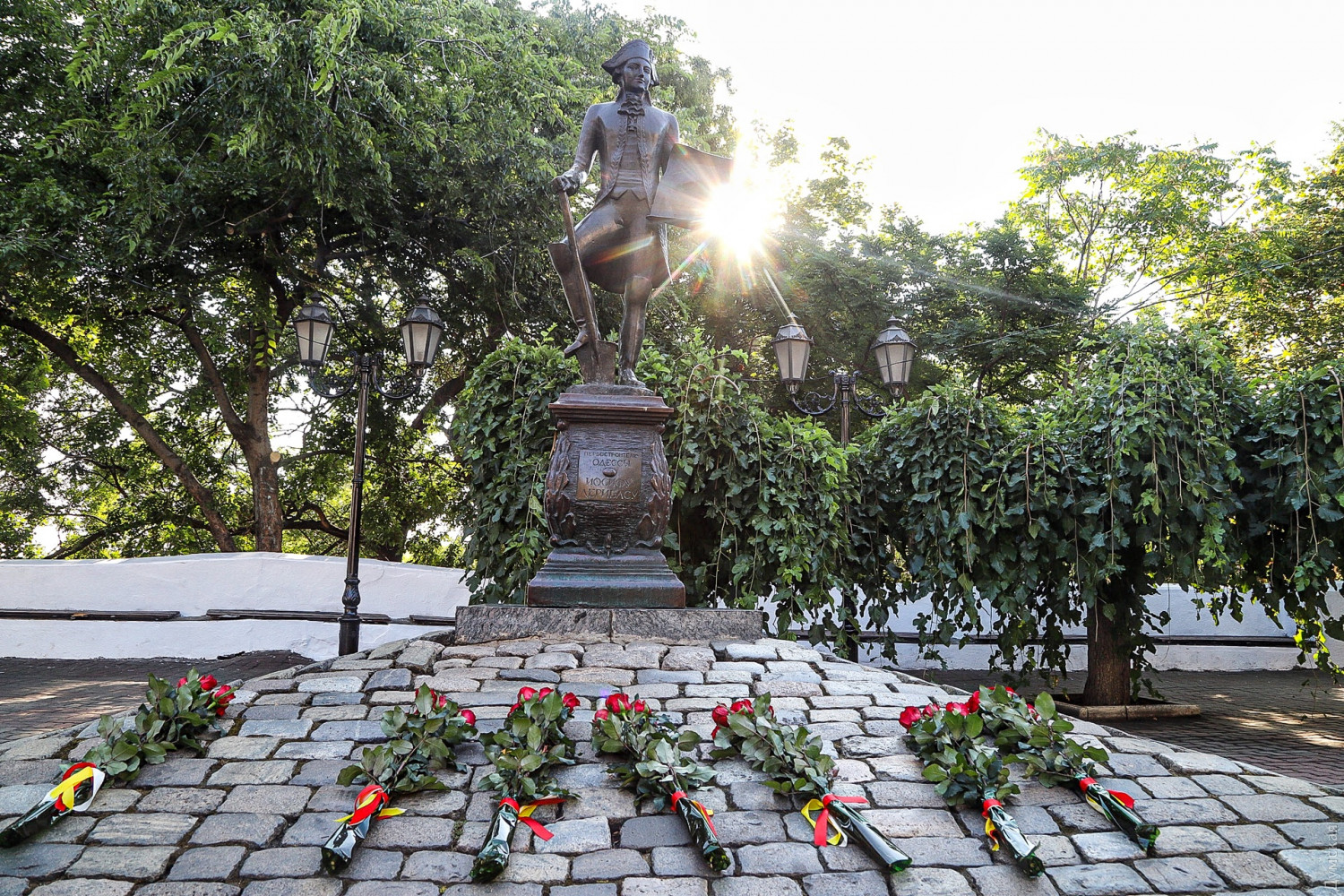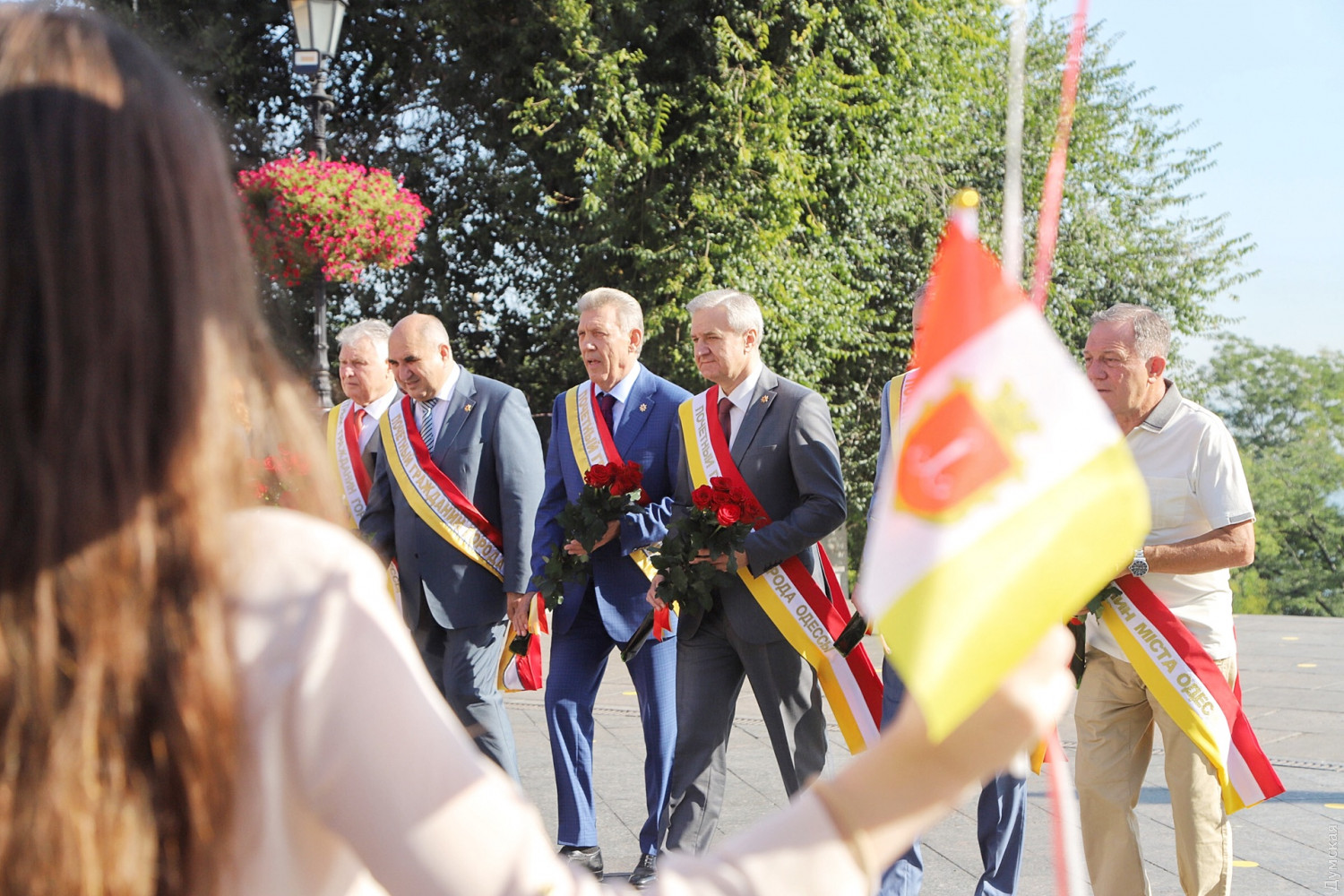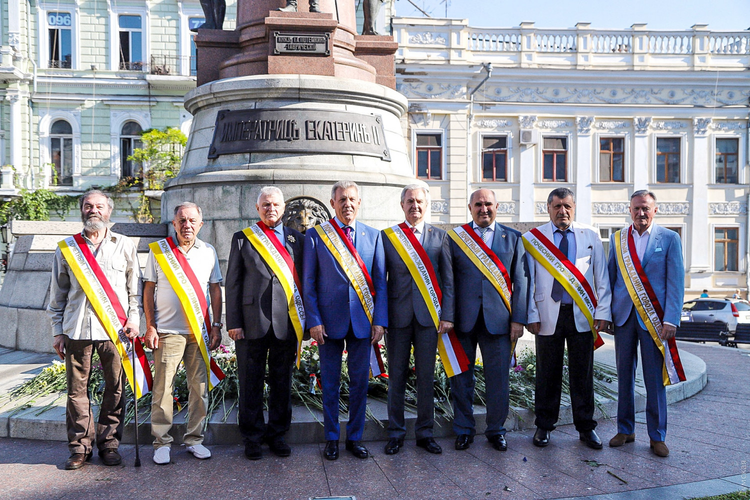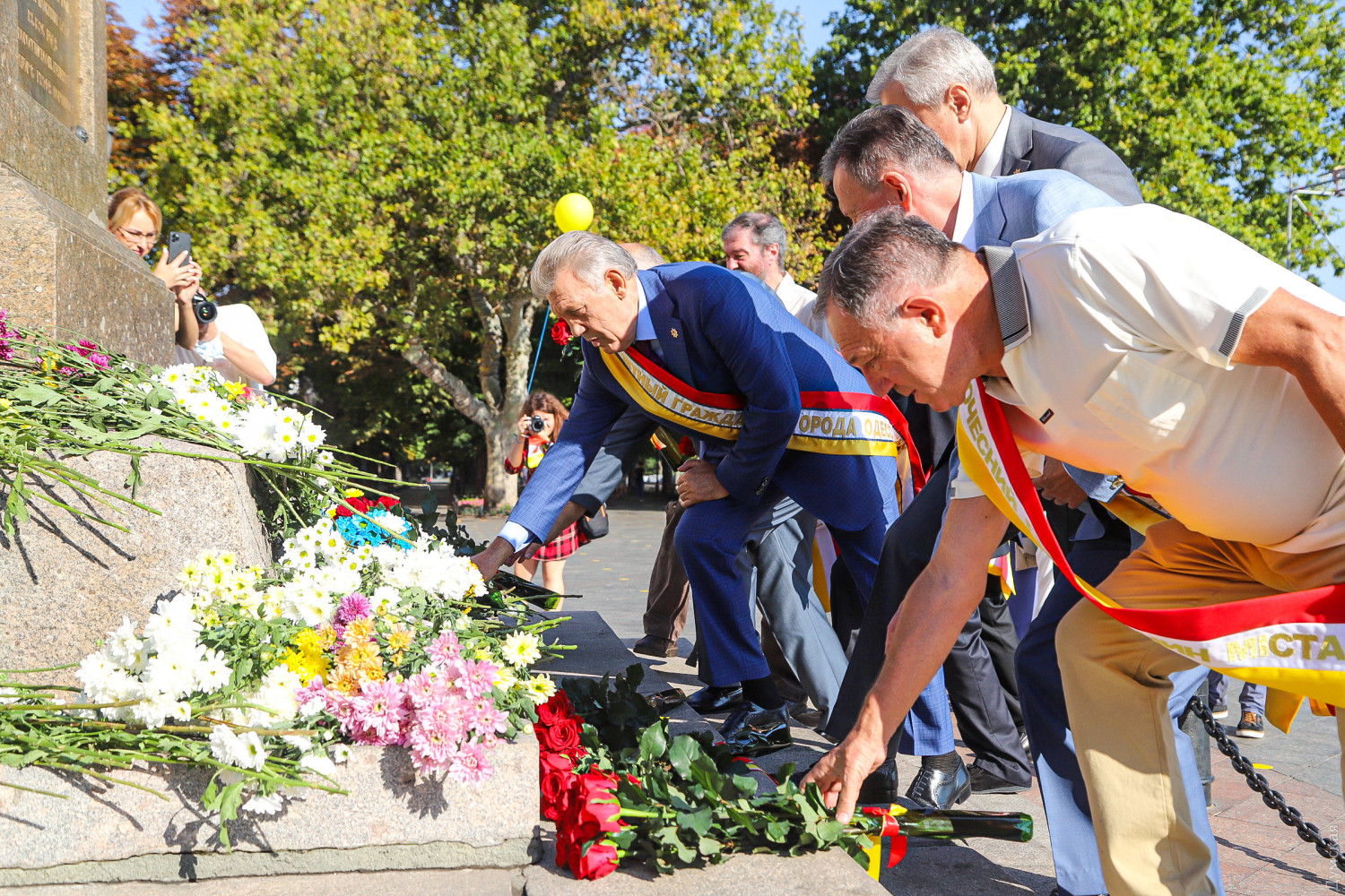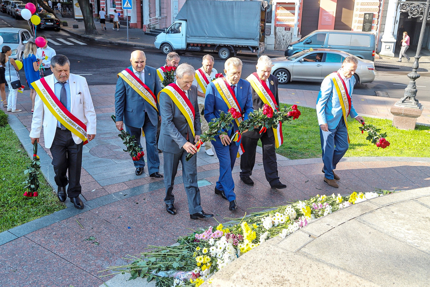 Празднование Дня города в Одессе стартовало с традиционного возложения цветов к памятникам основателям Одессы и другим выдающимся личностям. В этом году, правда, почетные граждане во главе с экс-нардепом Сергеем Киваловым не доехали до Атамана Головатого. Цветы достались Дерибасу, Дюку, Екатерине II с фаворитами и Маразли.