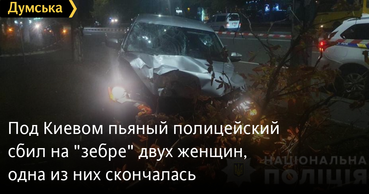 Под Киевом пьяный полицейский сбил на «зебре» двух женщин, одна из них скончаласьВ Броварах Киевской области полицейский, который находился в состоянии алкогольного опьянения, сбил на пешеходном переходе двух женщин. Одна из них скончалась на месте происшествия от полученных травм. Об этом сообщила пресс-служба Нацполиции в Киевской области. Информация об аварии поступила в полицию 4 октября около 17.50. На место ДТП прибыли руководство столичного управления и полиции Киевской области. Также там работали сотрудники Государственного бюро расследований. По предварительной версии, водитель автомобиля «Фольксваген», находясь за рулем в состоянии опьянения, на пешеходном переходе сбил двух женщин. Потом он проехал еще полсотни метров и столкнулся с деревом. В результате аварии одна из женщин умерла на месте от полученных травм, а другую пострадавшую доставили в больницу. Руководитель Нацполиции Игорь Клименко заявил, что виновник ДТП уже уволен из органов внутренних дел, а его непосредственного руководителя после проведения служебного расследования снимут с должности. СМЕРТЬ РОССИЙСКИМ ОККУПАНТАМ! Заметили ошибку? Выделяйте слова с ошибкой и нажимайте control-enter Новости по этой теме: 30 августа 2025: Машина вылетела в кювет: мэр Рени попал в аварию, его мать погибла, а маленький сын в больнице (фото) 18 августа 2025: Трое погибли, один в больнице: на трассе Одесса-Рени водитель Mercedes не пропустила фуру (фото) 28 июля 2025: Пьяный на «Ягуаре» или гипертоник? Уволенный топ-чиновник одесской полиции хочет вернуться на службу 2 апреля 2025: В Одессе водитель BMW спровоцировал аварию, в которой пострадали пять человек, и сбежал (фото, видео) 17 марта 2025: Непрофессионализм или злой умысел? В Одессе аварию с двумя пострадавшими оформили как админнарушение 30 декабря 2024: Начали отмечать: в Одессе резко скакнуло количество дорожных аварий |