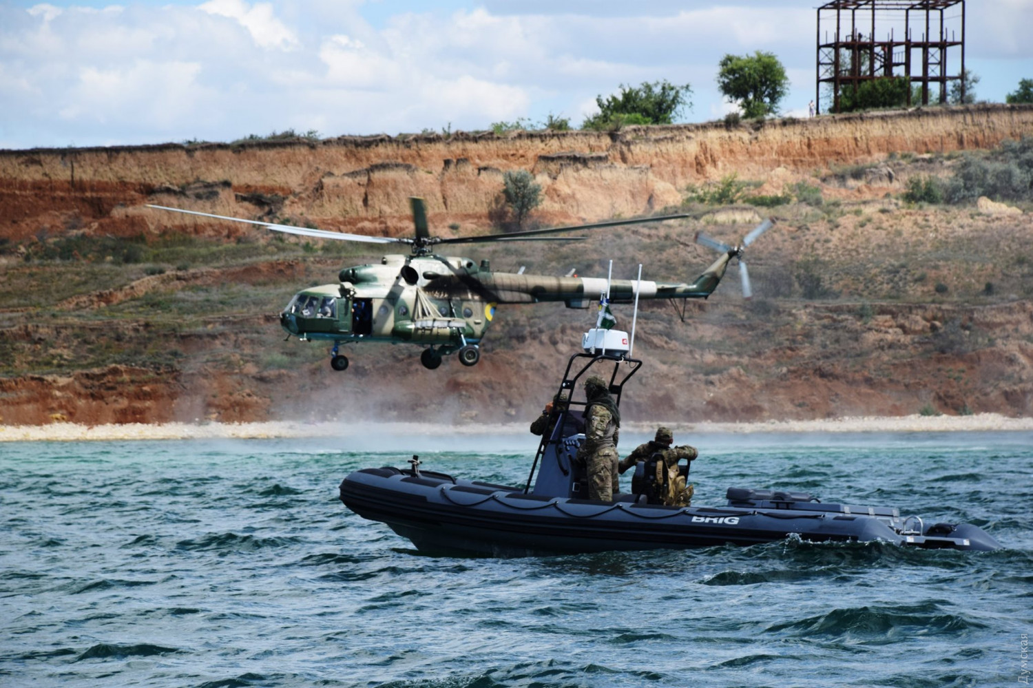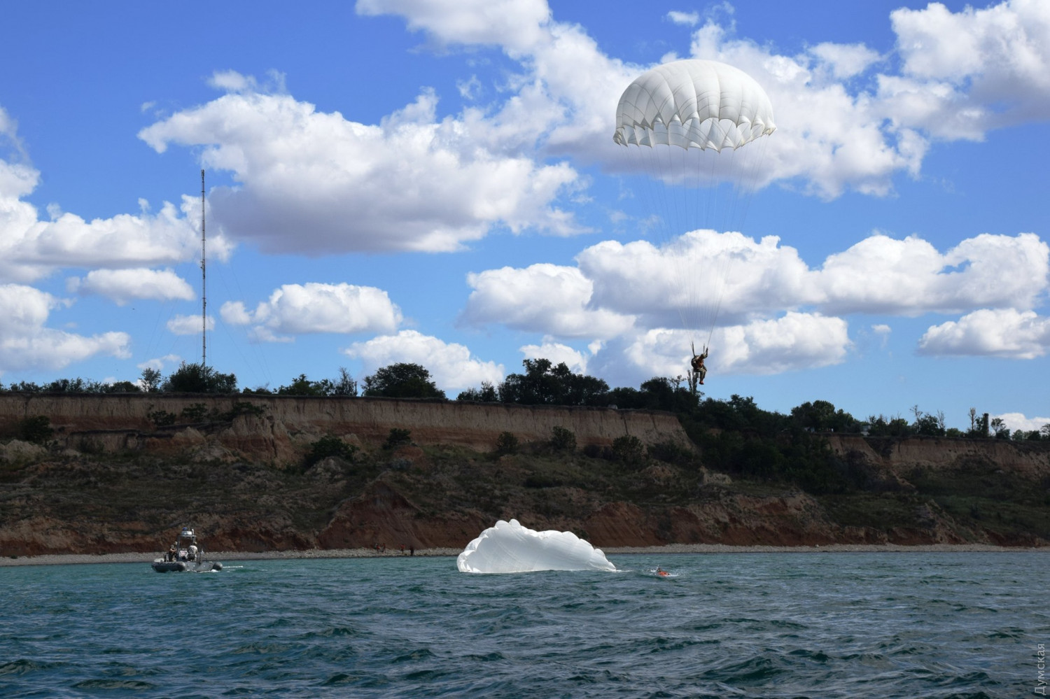 Третьекурсники факультетов подготовки специалистов десантно-штурмовых войск, а также военной разведки и спецназа Военной академии Одессы совершили учебные прыжки с вертолета с парашютом, а также беспарашютное десантирование в море. Как сообщили в пресс-службе вуза, учения прошли на полигоне в Одесской области. Сначала бойцы десантировались с оружием и боевым снаряжением с вертолетов Ми-8 на сушу с высоты 600 метров. Следующим этапом стал парашютный десант на воду. Напоследок бойцы высадились в море с малой высоты беспарашютным способом. СМЕРТЬ РОСІЙСЬКИМ ОКУПАНТАМ! Помітили помилку? Виділяйте слова з помилкою та натискайте control-enter |
