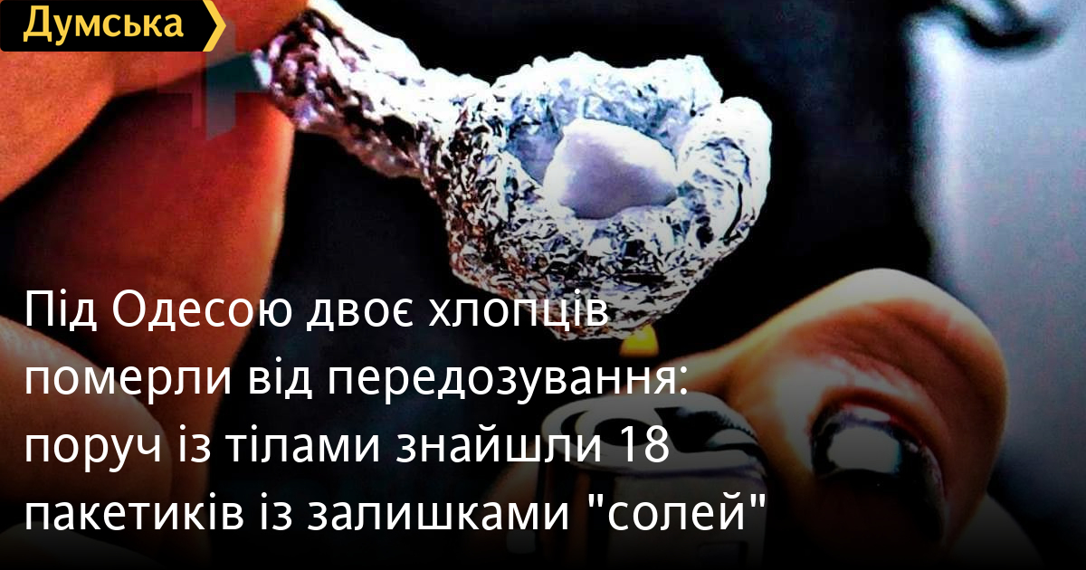 Під Одесою двоє хлопців померли від передозування: поруч із тілами знайшли 18 пакетиків із залишками «солей»Тіла двох 19-річних хлопців знайшли в покинутому будинку в селі Олександрівка Лиманського району. Як повідомили «Думській» власні джерела, вони померли від передозування наркотиків. Поруч із трупами виявили 18 пакетиків із залишками «солей», бульбулятор, а також таблетки. Ознак насильницької смерті на тілах не виявили, їх направили на судмедекспертизу. Поліцейські вирішують, чи починати досудове розслідування за статтею про умисне вбивство. СМЕРТЬ РОСІЙСЬКИМ ОКУПАНТАМ! Помітили помилку? Виділяйте слова з помилкою та натискайте control-enter |