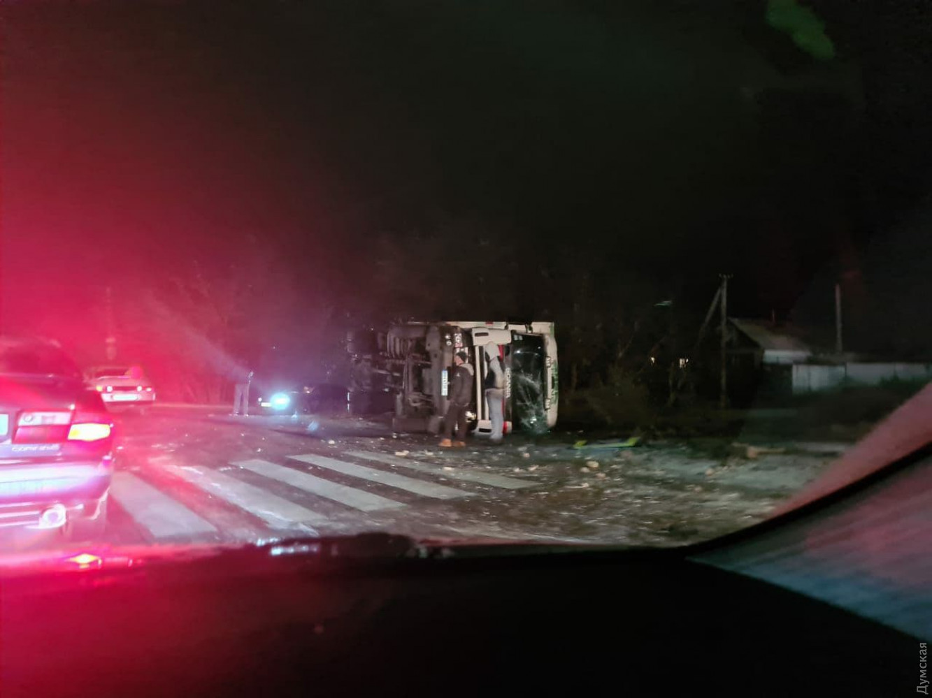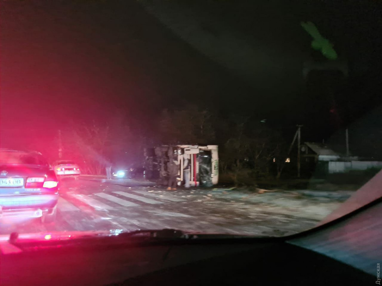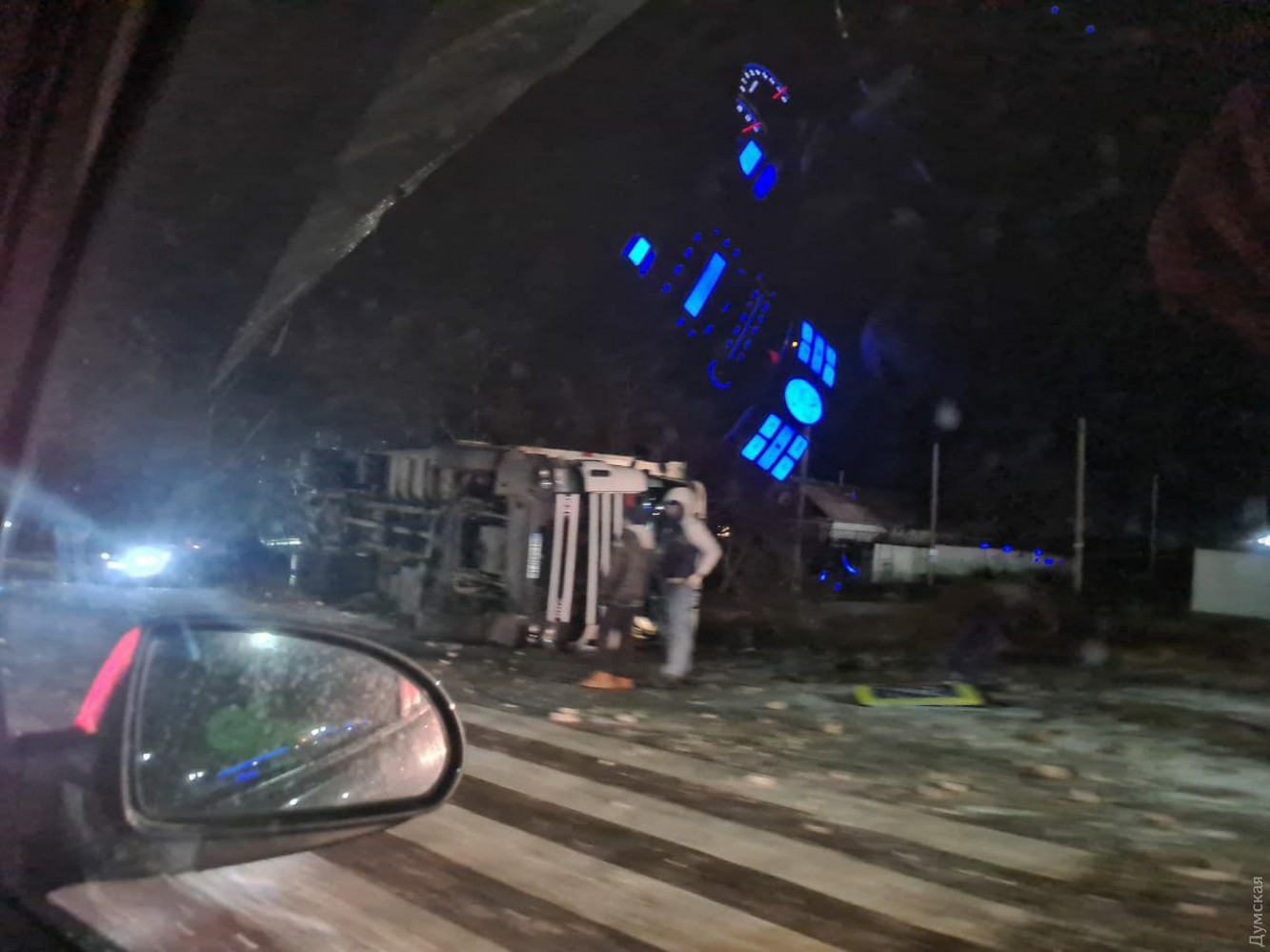 Грузовик опрокинулся на бок на дороге М16 Одесса – Кучурган у села Петрово в Беляевском районе Одесской области. Фото ДТП опубликовал очевидец. Водитель грузовика не справился с управлением на скользкой дороге. Свидетель инцидента утверждает, что фура перевернулась из-за того, что ее водитель уходил и резко повернул, чтобы не столкнуться с легковушкой, которая выезжала из села. «Водитель сам смог вылезти из грузовика и через дорогу из магазина вызвать скорую помощь. Жаловался на боль в спине. К счастью, все живы», — рассказал очевидец. СМЕРТЬ РОСІЙСЬКИМ ОКУПАНТАМ! Помітили помилку? Виділяйте слова з помилкою та натискайте control-enter Новини по цій темі: 30 серпня 2025: Машина вилетіла в кювет: мер Рені потрапив в аварію, його мати загинула, а маленький син у лікарні (фото) 18 серпня 2025: Троє загинули, один у лікарні: на трасі Одеса-Рені водій Mercedes не пропустив фуру (фото) 28 липня 2025: П'яний на "Ягуарі" або гіпертонік? Звільнений топ-посадовець одеської поліції хоче повернутися на службу 2 квітня 2025: В Одесі водій BMW спровокував аварію, в якій постраждали п`ятеро людей, і втік (фото, відео) |