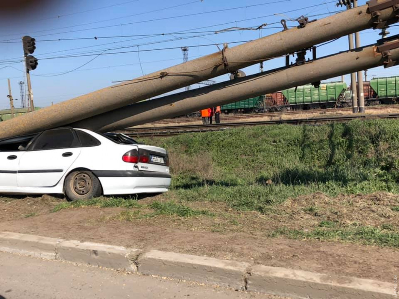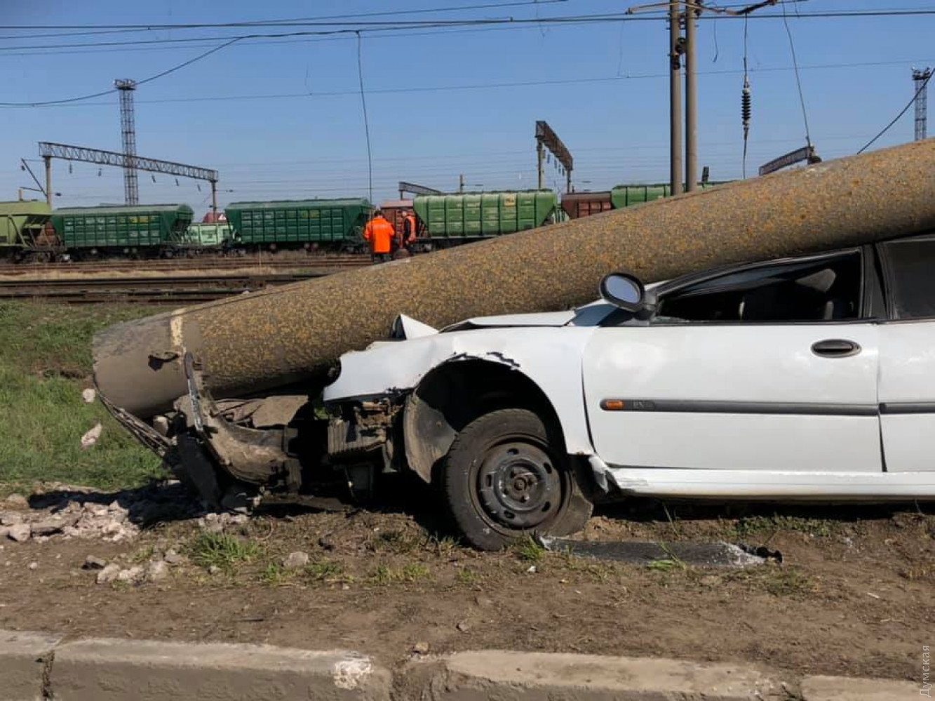 Под Одессой водитель легковушки сбил электроопору железной дороги