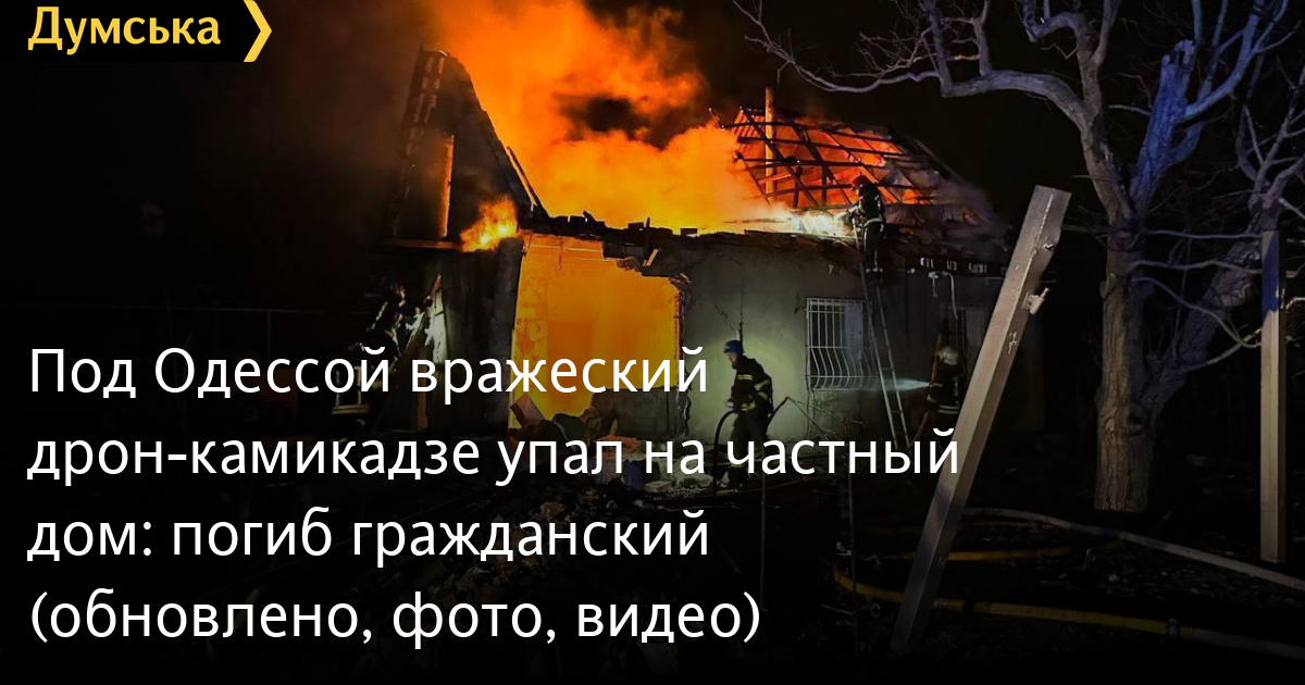 Під Одесою ворожий дрон-камікадзе впав на приватний будинок: загинув цивільний (оновлено, фото, відео)Підбитий «шахід» уночі 17 грудня впав на приватний будинок в Одеському районі. Унаслідок вибуху загинув цивільний чоловік. У штабі Сил оборони півдня України повідомили, що внаслідок вибуху спалахнула пожежа, вибухова хвиля пошкодила будинки навколо. У ДСНС уточнили, що було зруйновано три одноповерхові будинки, два з яких також загорілися. На місці інциденту працювали 53 рятувальники і десять спецмашин. Під час нічної повітряної атаки дев'ять дронів було збито над Одеською областю, ще сім над Херсонською. За даними Повітряних сил Збройних сил України, вночі окупанти випустили 20 дронів і ракету Х-59. Усі цілі вдалося збити. Крім того, противник використав крилату ракету «Іскандер-К», яка також «не досягла цілі». ОНОВЛЕНО ОБ 11:23. Загинув 54-річний чоловік, який проживав у приватному будинку. Внаслідок влучання дрона будинок повністю зруйновано, повідомили в обласній прокуратурі. Будинки навколо зазнали пошкоджень дахів, перекриттів, вікон і дверей. Також зруйновано склад спортивного закладу. Відкрито кримінальне провадження за фактом порушення законів та звичаїв війни (ст.438 КК України). СМЕРТЬ РОСІЙСЬКИМ ОКУПАНТАМ! Помітили помилку? Виділяйте слова з помилкою та натискайте control-enter |