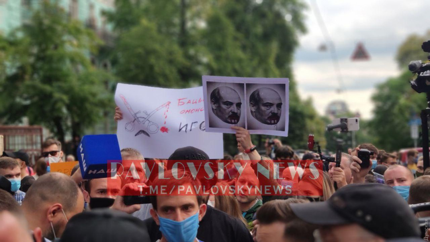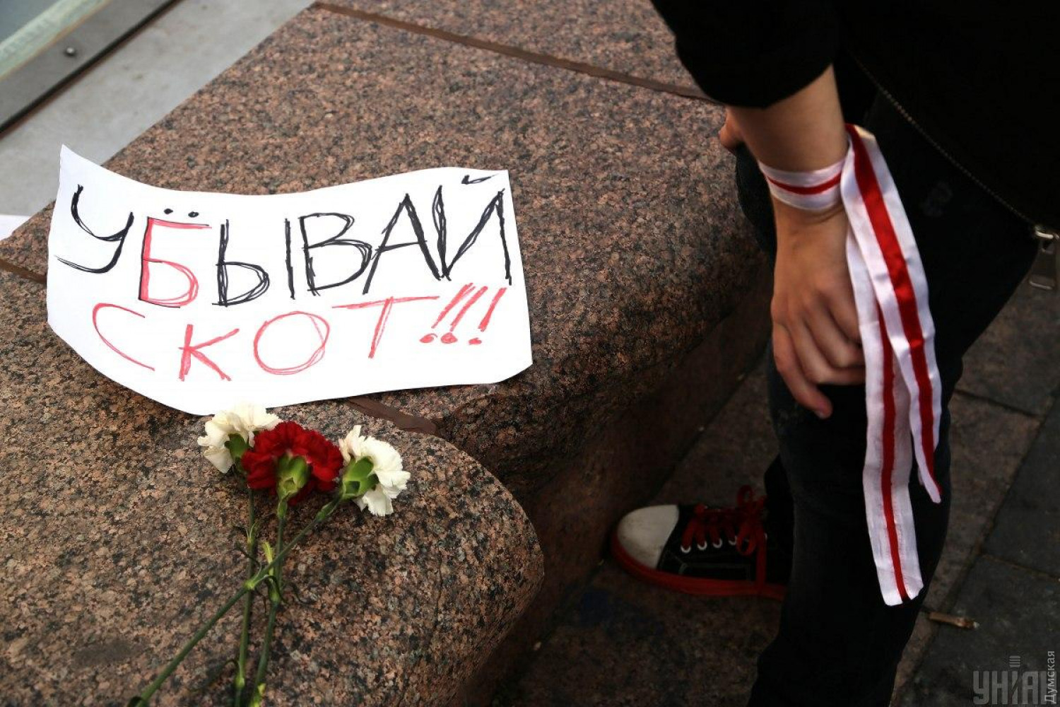 Под посольством Беларуси в Киеве жгли файеры и скандировали «Свободу политзаключенным»Сегодня в Киеве под посольством Беларуси прошла акция в поддержку белорусского народа, который уже пятый день протестует против фальсификации результатов президентских выборов в стране. На акцию собрались порядка 300 человек, среди которых правозащитники, депутаты Верховной Рады и представители белорусской общины в Украине. Они держат плакаты с лозунгами и надписями на белорусском языке «Хватит мучить нас. Беларусь свободная страна», «Лукашенко — убирайся!», «Людей убивают — обеспокоенности мало» и другие. Активисты уверены, что мировое сообщество должно оказать давление на президента Александра Лукашенко, чтобы он прекратил репрессии и применение силы против мирных митингующих. Они также требуют освобождения всех задержанных и выкрикивают лозунг «Свободу политзаключенным». Некоторые участники акции несколько раз зажигали файеры, что привело к перепалке с полицией, и выкрикивали оскорбления в адрес министра внутренних дел Украины Арсена Авакова. СМЕРТЬ РОССИЙСКИМ ОККУПАНТАМ! Заметили ошибку? Выделяйте слова с ошибкой и нажимайте control-enter Новости по этой теме: 9 августа 2021: Лукашенко защитил Зеленского в ситуации с вагнеровцами: «Кто-то из негодяев их туда отправил, но мы остались с ними друзьями» 3 августа 2021: В Одессе почтили память белорусского оппозиционера, найденного повешенным в киевском парке (фото, видео) |