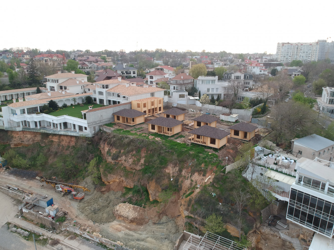 Деревянные домики неизвестного происхождения «украсили» верхнюю кромку приморского склона на 10-й Фонтана. Они выросли аккурат над террасой ресторана «Зебра», которую разобрали для строительства велопешеходной эстакады. Никаких разрешений у строителей нет. ОБНОВЛЕНО В 9:54. С редакцией связался застройщик этого участка, который утверждает, что все разрешения у него есть, в том числе госакты на землю. ОБНОВЛЕНО В 13:43. Как стало известно «Думской», инспекторы ГАСК, которые проверяли объект в феврале сего года, нашли там ряд нарушений. В частности, домики построены с серьезным отклонением от утвержденного проекта. Кроме того, расстояние между ними меньше допустимого, что противоречит правилам пожарной безопасности. Застройщика привлекли к административной ответственности. СМЕРТЬ РОСІЙСЬКИМ ОКУПАНТАМ! Помітили помилку? Виділяйте слова з помилкою та натискайте control-enter Новини по цій темі: 6 листопада 2024: Спроба №... Готель-барак на схилі 13-го Фонтану в Одесі все ж визнали незаконним, але боротьба за нього триває 26 листопада 2024: Через кримінальне провадження до продажів: узаконений нахаббуд на одеському узбережжі перетворюється на елітний житловий комплекс (фото) 30 вересня 2024: Одеська прокуратура наполягає на перегляді великої земельної приватизації часів Гурвіца: вимагає повернути землю біля моря 29 липня 2024: Власники закладів в одеській Отраді стверджують, що вже знесли літній майданчик, який збиралася демонтувати мерія (фото) 25 липня 2024: Мерія Одеси хоче демонтувати літні майданчики на Ланжероні та в Отраді: екснардеп зніс усе сам (обновлено) |