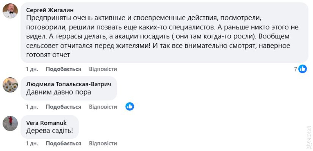 Під загрозою дорога і приватні будинки: у приморському селищі під Одесою стався масштабний зсувСильний зсув стався 30 вересня в курортному селі Фонтанка під Одесою, створивши пряму загрозу для розташованих нижче дороги, приватних будинків і дач. Про це «Думській» повідомили місцеві жителі. Розуміючи, що проблема давня, люди обрушилися з критикою на владу через запізнілу реакцію. Так, в.о. сільського голови Андрій Серебрій пояснив активність ґрунту на даній ділянці діяльністю підземних вод. «3 вересня з'явилася тріщина, ми оперативно огородили ділянку, встановили інформаційні знаки про можливість зсуву, — повідомляє Серебрій. — І ось після негоди 30 вересня, власне, він і стався. Ми встановили додаткові знаки і звернулися до фахівців Одеської національної академії будівництва та архітектури, щоб вони розібралися в ситуації і дали рекомендації, як і що нам робити, щоб стабілізувати схил». Поки ж чиновники обмежилися посиленням інформування населення, а також перепідключили електричні мережі для недопущення аварійних ситуацій — кілька стовпів опинилися в зоні зсуву. Жителям Фонтанки незрозуміло, чому Андрій Серебрій, який очолює сільраду вже сім місяців і сам же визнав, що про проблему давно відомо, тільки зараз звернувся до фахівців. Новина про те, що чиновники провели виїзне засідання комісії з надзвичайних ситуацій і довго з сумом дивилися на провал, викликала критику з боку підписників сторінки. «Вжито дуже активних і своєчасних заходів: подивилися, поговорили, вирішили покликати ще якихось фахівців. А раніше ніхто цього не бачив. А тераси робити, а акації посадити? Загалом, сільська рада відзвітувала перед мешканцями! І так всі уважно дивляться, напевно готують звіт», — написав користувач Сергій Жигалін. Неприємність ситуації полягає в тому, що тепер зсунутий шматок схилу нависає над дорогою і може спричинити її подальше сповзання, а внизу знаходяться приватні житлові будинки та дачі. Нагадаємо, нещодавно у Фонтанці стався ще один скандал — депутати провели перерозподіл бюджетних коштів, забравши фінансування у військових і укриттів, щоб підвищити зарплати співробітникам КП «Ритуальні послуги». Директором цього підприємства є депутат від колишньої ОПЗЖ, а його заступник — чоловік іншої депутатки від тієї ж партії. Разом з тим коаліція ОПЗЖ і «слуг», яку курирує депутат Одеської облради від партії «Слуга народу» Дмитро Ковбасюк, продовжує піаритися на будь-яких малозначущих об'єктах і заходах, в той час як серйозна проблема вимагає оперативного вирішення. У мережі можна знайти фотографії депутата на тлі відремонтованих доріжок, в'їздів, біля котлованів і майже на всіх святах. СМЕРТЬ РОСІЙСЬКИМ ОКУПАНТАМ! Помітили помилку? Виділяйте слова з помилкою та натискайте control-enter |