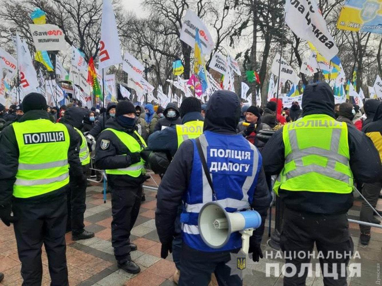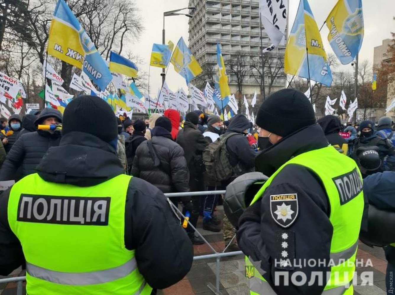 В полиции отмечают, что митингующие перекрыли дорогу и мешали народным депутатам беспрепятственно покинуть здание Рады.