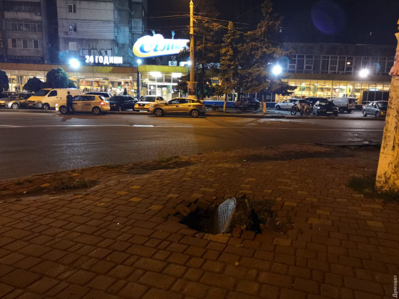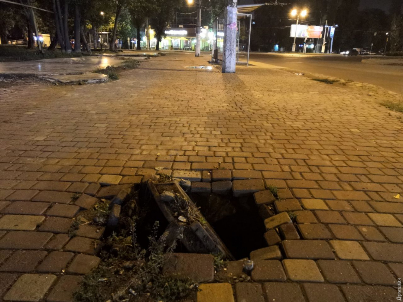 Так, в добивку к нашей подборке читатель прислал фото тротуара на площади Толбухина — там запросто можно провалиться в открытый люк.