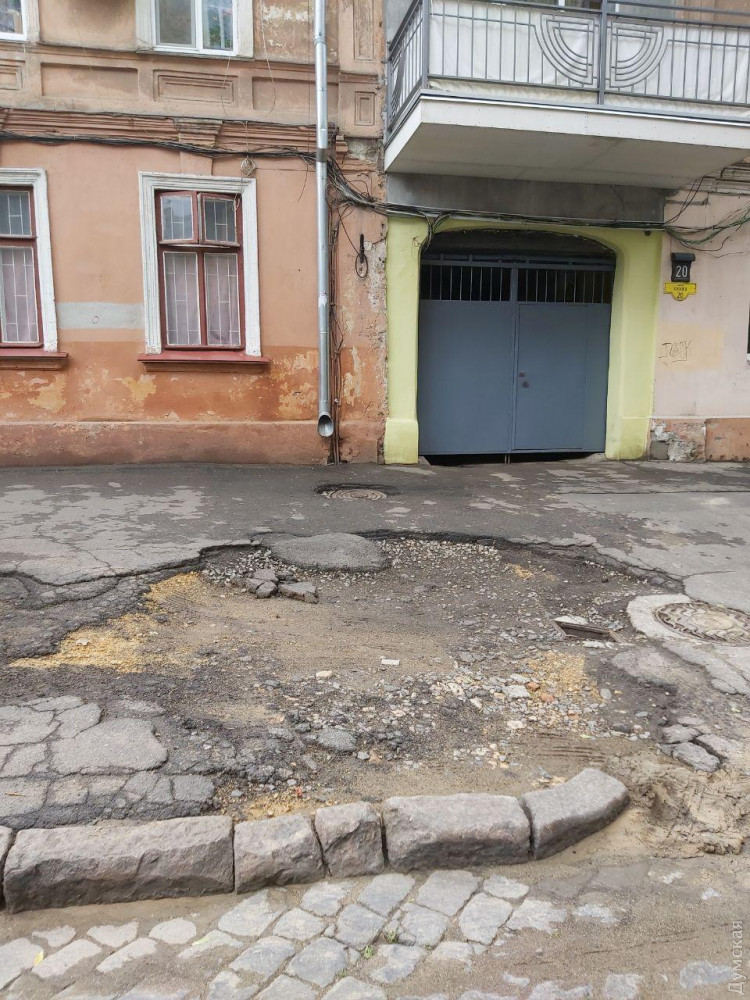 Одесские мастера 150 лет тому назад укладывали лавовую плитку и мостовую брусчатку на глинозем. Поэтому,   там, где были уложены лавовые плиты и брусчатка таких провалов нет.