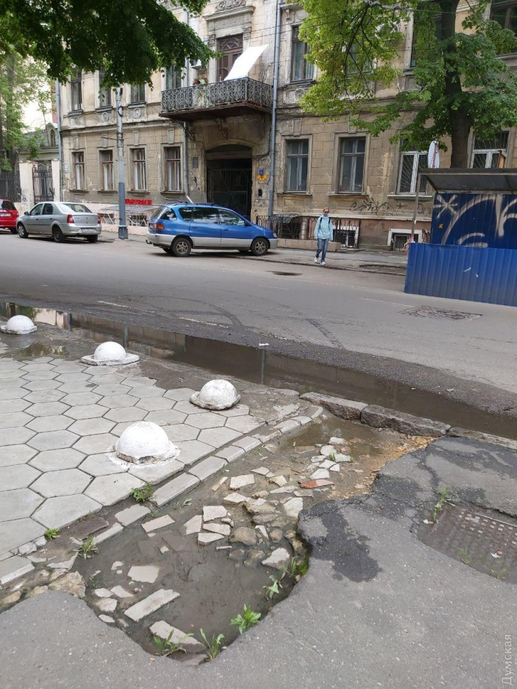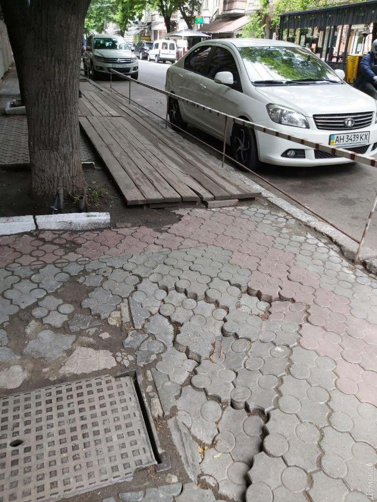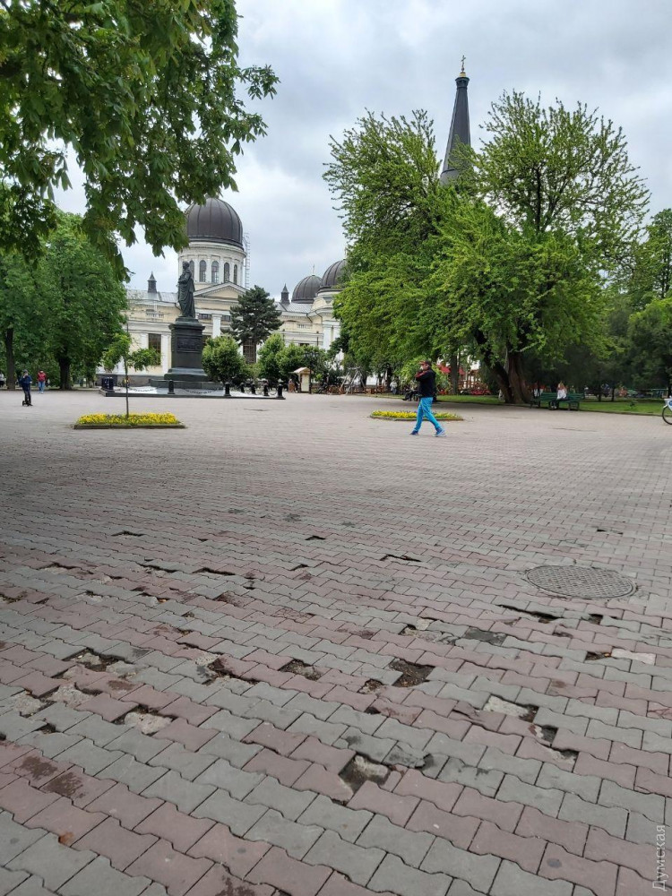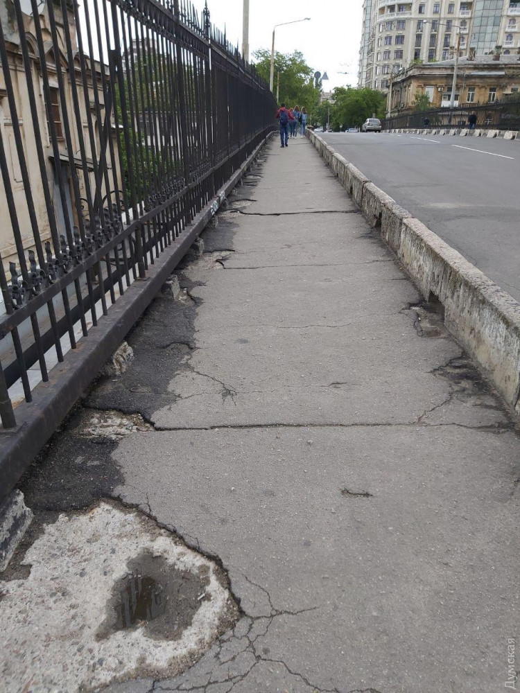 Кое-где провалена плитка, где-то отсутствует асфальт (и это был всего лишь один маршрут). Одним словом, на каблуках по Одессе дамам лучше не ходить.
