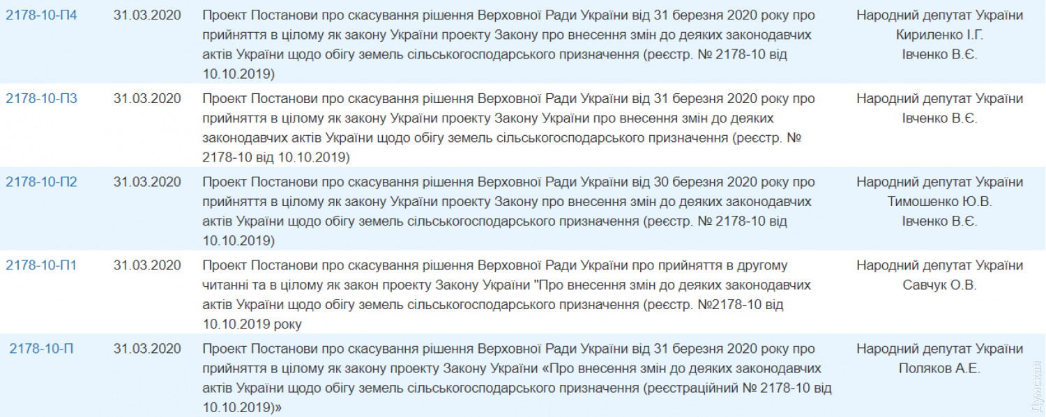 В Верховной Раде 31 марта зарегистрировали пять проектов постановлений об отмене законопроекта об открытии рынка земли. Об этом свидетельствуют данные на сайте ВР. Утром два проекта постановлений внесли внефракционные депутаты, а позднее на сайте появилось еще три постановления «Об отмене решения Верховной рады Украины от 31 марта 2020 года о принятии в целом как закона проекта закона о внесении изменений в некоторые законодательные акты Украины об обороте земель сельскохозяйственного назначения (реестр. № 2178-10 от 10.10.2019)». Отметим, что согласно закону, пока парламентарии не рассмотрят данные проекты постановлений, подписание принятого закона заблокировано для спикера ВР Дмитрия Разумкова и президента Владимира Зеленского. Напомним, скандальный законопроект об открытии рынка земли был принят сегодня ночью. Депутаты заседали почти восемь часов пока не рассмотрели все оставшиеся 700 правок из более 4 тысяч внесенных к закону. За проголосовали 256 парламентариев. СМЕРТЬ РОССИЙСКИМ ОККУПАНТАМ! Заметили ошибку? Выделяйте слова с ошибкой и нажимайте control-enter |