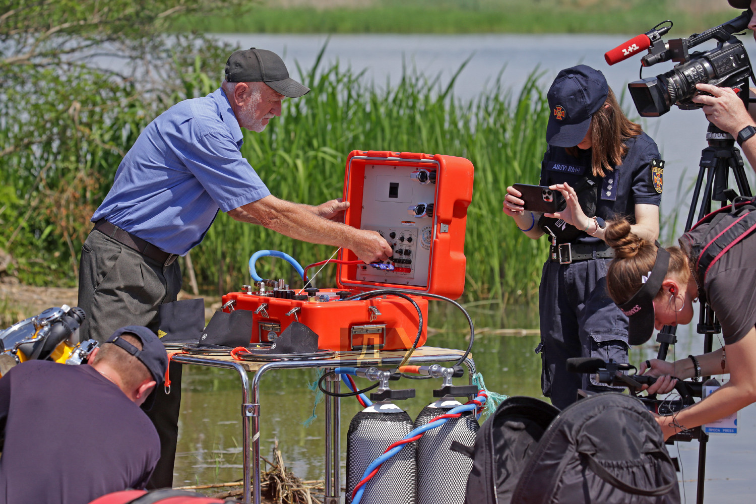 Українські водолази-рятувальники та їхні британські колеги провели спільні навчання на Дністрі. У програму занять входило обстеження русла річки і порятунок людей, що тонуть, повідомляє кореспондент «Думської». Використовували, крім іншого, нову підводну систему Kirby Morgan (компанія базується в окрузі Санта-Барбара, штат Каліфорнія), отриману нещодавно одеськими рятувальниками. Її випробували і британці. Система дає змогу спускатися на глибину до 60 метрів і оснащена блоками зовнішньої подачі дихальної суміші. Обладнання дає змогу тримати постійний голосовий зв'язок із водолазом, миттєво реагуючи на його стан. Українські бойові плавці вперше побачили ці системи 2021 року під час міжнародних навчань «Сі Бриз». Працюючи в таких шоломах, американські водолази очистили дно Практичної гавані, а також підняли рештки знаменитого катера Брежнєва, який затонув там 2016-го року. Рятувальники запевняють: таке просунуте обладнання — велика рідкість, а в Україні є тільки у них. За словами сержанта служби цивільного захисту Олександра Берекета, умови роботи в річці значно відрізняються від моря. «Видимість у річковій воді дуже невелика, з кожним кроком ґрунт змінюється — від твердого до дуже м'якого, — розповідає водолаз. — Під час руху по дну на шестиметровій глибині мені довелося навіть трохи застрягти в мулі. Також сильно заважає течія, для протидії їй доводиться брати більше вантажу». Водолази тренуються в різних умовах приблизно тричі на тиждень. «Якщо водолаз не тренується — це не водолаз, без тренувань він не зможе виконувати завдання», — кажуть вони. Британець Філ Пол прибув в Україну для навчання наших фахівців і має великий досвід ліквідації надзвичайних ситуацій. Сьогодні він уперше одягнув Kirby Morgan і залишився задоволений зануренням. «Такий досвід занурень цінний для мене, у нас у Британії немає таких підтоплень, як у вас у Херсонській області, тому ми ретельно вивчаємо всі нюанси, — розповів британський водолаз. — Ми обмінюємося досвідом з українськими колегами і хочемо підготувати досвідчених фахівців». Керівник пресслужби ДСНС в Одеській області Марина Мартиненко зазначила, що сьогоднішні тренування проводять з огляду на ситуацію в Херсонській області. «Сьогодні тренувалися професіонали, які не раз брали участь у ліквідації різних надзвичайних ситуацій, — наголосила пресофіцерка. — Є водолази, які працювали вісім років тому в Затоці під час ліквідації аварії судна «Іволга». Є також співробітники, які працювали в Херсоні. У нас постійно відбувається оновлення в постачанні обладнання, тому водолази повинні підвищувати кваліфікацію, для цього потрібні регулярні тренування». Автор Сергій Смоленцев, фото автора СМЕРТЬ РОСІЙСЬКИМ ОКУПАНТАМ! ![]() Американские водолазы во время учений "Си Бриз-2021" очистили дно Практической гавани одесского порта Помітили помилку? Виділяйте слова з помилкою та натискайте control-enter |
