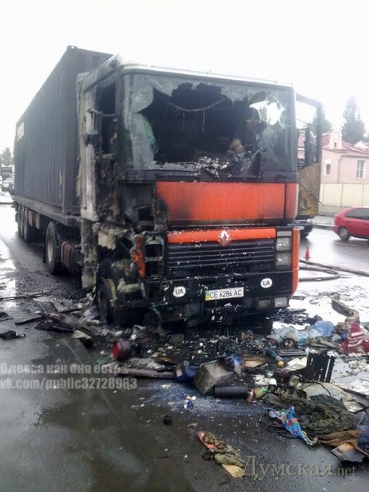 В районе автовокзала сгорела кабина грузовика «Рено». ЧП произошло около часа назад на улице Балковской. «Сообщение о пожаре поступило в 15:00. В тушении пожара принимало участие два пожарных расчёта», — сообщили «Думской» в облМЧС. По данным спасателей, в момент пожара фура была пустой — в результате происшествия никто не пострадал. Причины возгорания устанавливаются. Фото и видео: группа ВКонтакте «Одесса как она есть » СМЕРТЬ РОСІЙСЬКИМ ОКУПАНТАМ! Помітили помилку? Виділяйте слова з помилкою та натискайте control-enter Новини по цій темі: 9 жовтня 2025: Нічний удар по Одеській області: постраждали п'ятеро людей, понад 30 тисяч абонентів залишилися без світла 19 серпня 2025: У будівлі коледжу в центрі Одеси виявили труп невідомого 10 червня 2025: Масштабна пожежа у центрі Одеси: ймовірні винуватці спустилися по дереву з третього поверху та намагалися втекти (фото, відео, оновлено) 10 червня 2025: Одесу атакують дрони: дісталося пологовому та житловим будинкам і станції швидкої допомоги (оновлюється, фото) |