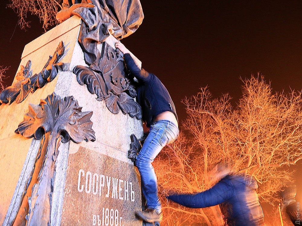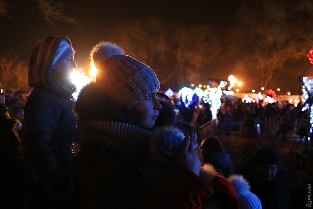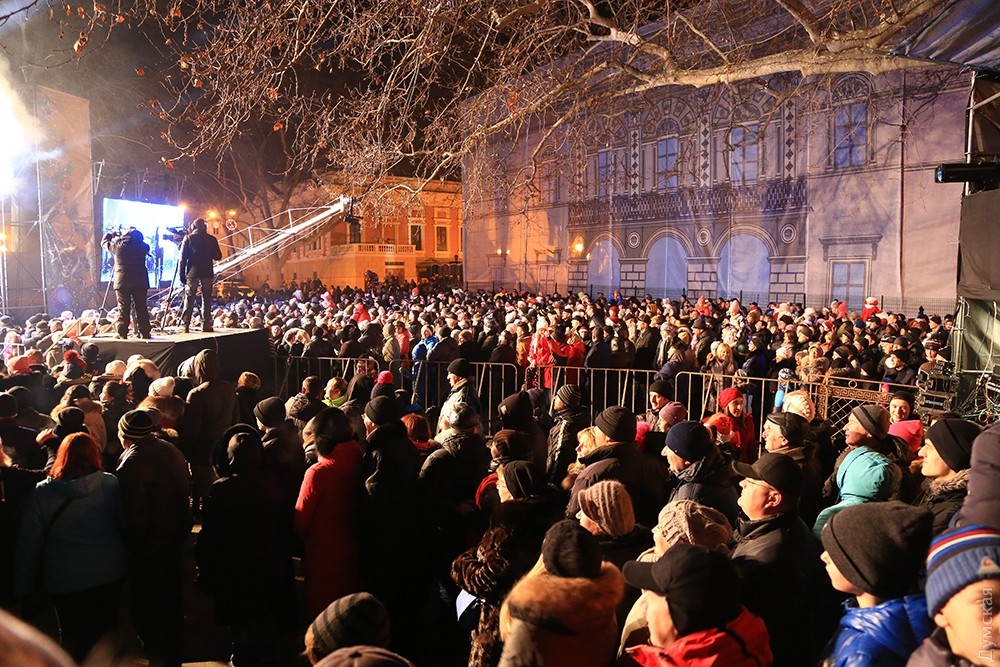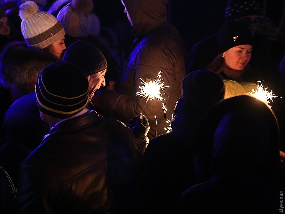 Зрителей много. Одесситы и гости города оккупировали весь Приморский бульвар и прилегающие улицы. В толпе мелькали бенгальские огни, бутылки с водкой и шампанским.