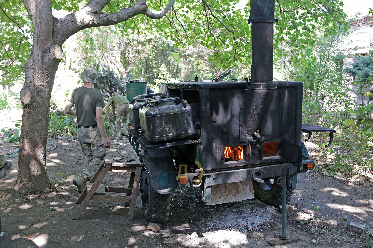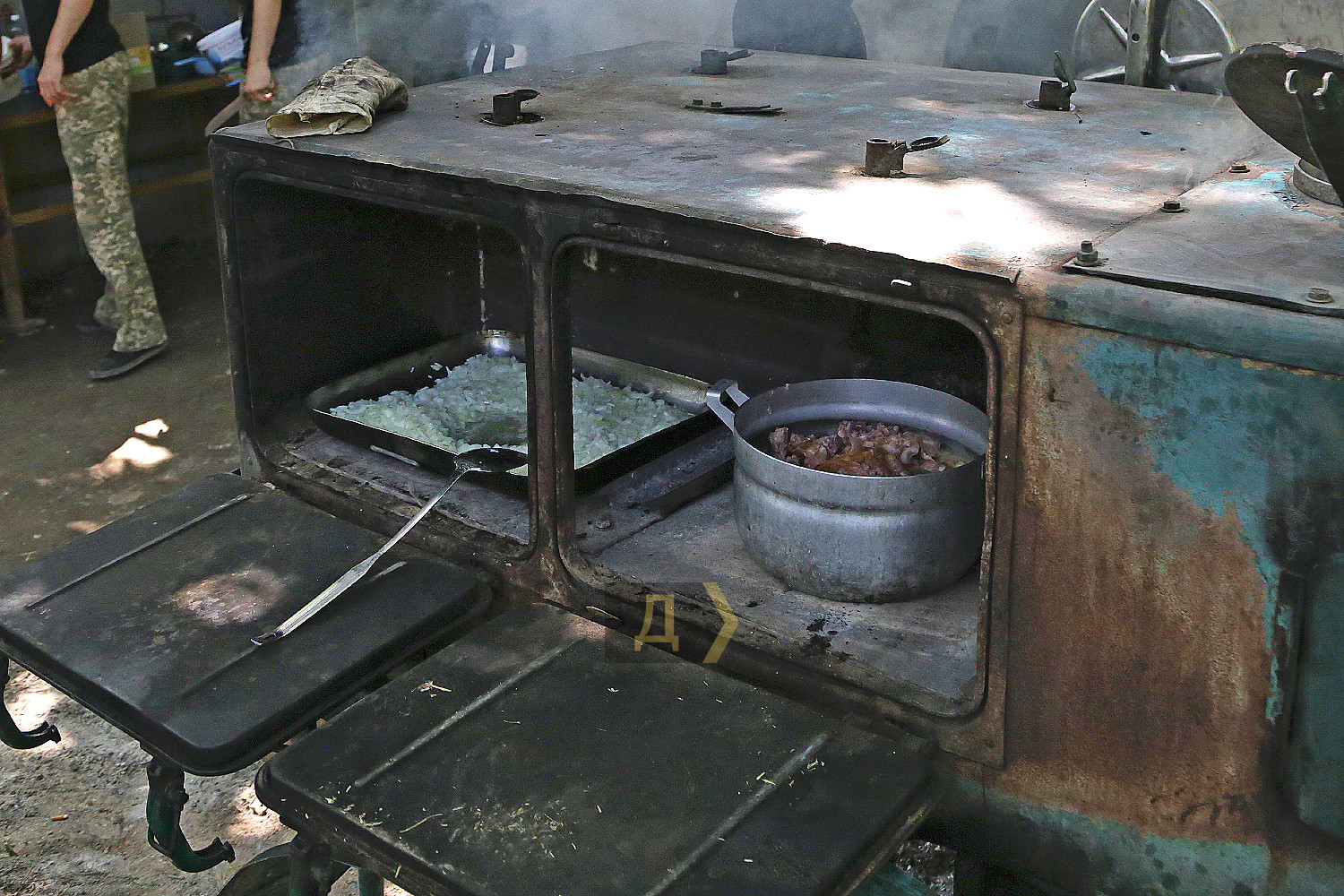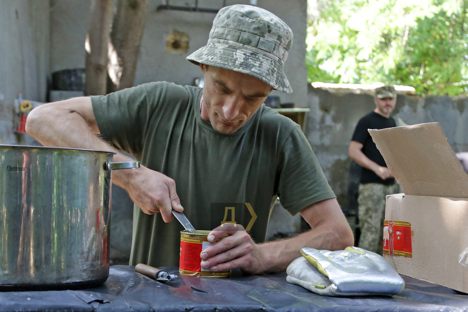 Продовольче забезпечення Сил оборони незаслужено залишається поза кадром українських ЗМІ. Ця тема вважається другорядною, чомусь її висвітлюють значно рідше бойової підготовки та власне бойових дій. Кореспондент «Думської» вирішив виправити несправедливість. Він побував у польовому розташуванні N-ської бригади морської піхоти і дізнавався, як і чим годують наших захисників. Шлях доброю дорогою туди займає близько години, але блокпости з автомобільною тягучкою значно подовжують подорож. Морпіхи розташувалися, дотримуючись усіх законів військового маскування – у непримітному місці, серед високих дерев та занедбаних господарських споруд. Незважаючи на віддаленість від міста, бійці непогано облаштували побут – тут є туалет, душові кабіни та навіть кілька пральних машин. Однак якщо форму можна випрати за допомогою сучасної електричної машини, то процес приготування їжі для цілого батальйону за останню сотню років анітрохи не змінився – ще ніхто не зміг придумати щось краще за стару добру армійську польову кухню. Але про все по порядку. Система харчування військовослужбовців, що діє сьогодні, була введена ще 2018 року і дещо вдосконалена 2020-го. Суть її насамперед у тому, що армія годує себе сама (раніше цим займалися залучені організації), за каталогом продуктів. На одного бійця виділяється фіксована сума. Сьогодні це 164 гривні на добу. Щотижневі меню складають начальники продовольчих служб підрозділів, виходячи з кількості особового складу та спираючись на каталоги, де вказано вартість продуктів. У кожному документі більше трьох сотень позицій, що дозволяє приготувати майже будь-яку страву. Меню обмежене лише польотом фантазії начпроду. Втім, тушкованих восьминогів або смажених куріпок тут вам не запропонують: польові умови – не місце для кулінарних експериментів. Хай там що, а військовослужбовець має отримувати харчування щонайменше тричі на добу — із загальною енергетичною цінністю не менш ніж 3500 кілокалорій. Вартість розподіляється приблизно так: сніданок – 35%, обід – 45%, вечеря – 20%. Конкретні умови майже завжди відрізняються від наказів та нормативних документів, але начальники продслужби намагаються витримати ці рекомендації. Насправді ж оптимальним вважається раціон, що містить 4200-4500 кілокалорій. Тижневий запас продуктів батальйон отримує щосуботи на центральному продуктовому складі ВМСУ. Тут, як у відомому оповіданні Михайла Жванецького, є все. У величезних залах із високою стелею досить холодно – за допомогою промислових кондиціонерів підтримується постійна температура 16-18 градусів. М'ясо, риба, ковбаси, сири та інші продукти, що швидко псуються, зберігають у великих холодильних камерах. В окремих приміщеннях знаходяться овочі, фрукти, крупи, кондитерські вироби, а також соки, напої (чай, кава), різні консерви, включаючи печериці та навіть маслини. Якщо рота або взвод відправляється на завдання, бійці одержують суху пайку. Зараз на складі, окрім українського, є «сухпаї» від партнерів по НАТО – данська та британська. Піддані її величності Єлизавети II назвали свій продукт «Паляниця», на честь українського слова-шиболету. Військові кажуть, що він дуже смачний і якісний, але його енергетична цінність недостатня – всього 2500 кілокалорій, тому до нього треба додавати ще щось або давати дві упаковки «паляниці» 