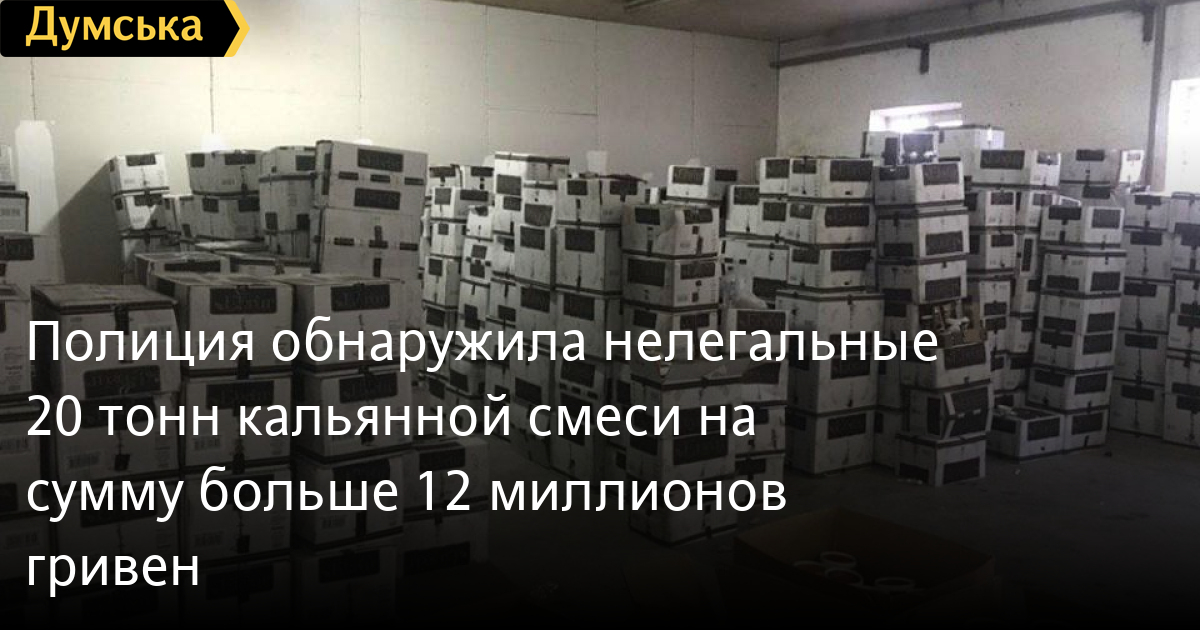 Полиция обнаружила нелегальные 20 тонн кальянной смеси на сумму больше 12 миллионов гривенБолее 20 тонн смеси для курения кальяна было изъято в результате обыска, который провели вчера оперативники Управления защиты экономики национальной полиции Украины. Как сообщает пресс-служба управления, обыск проводился в нежилом помещении в рамках уголовного производства по статье о незаконном производстве, продаже и транспортировке подакцизных товаров. На товаре отсутствовали какие-либо документы, включая сертификаты качества и документацию, подтверждающую законное перемещение груза через государственную границу Украины. Коробки были маркированы надписью «FOR DUTY FREE SALE ONLY». Полицейские оценили конфискованные кальянные смеси на сумму более 12 млн гривен. Продолжаются следственные действия. СМЕРТЬ РОССИЙСКИМ ОККУПАНТАМ! Заметили ошибку? Выделяйте слова с ошибкой и нажимайте control-enter |