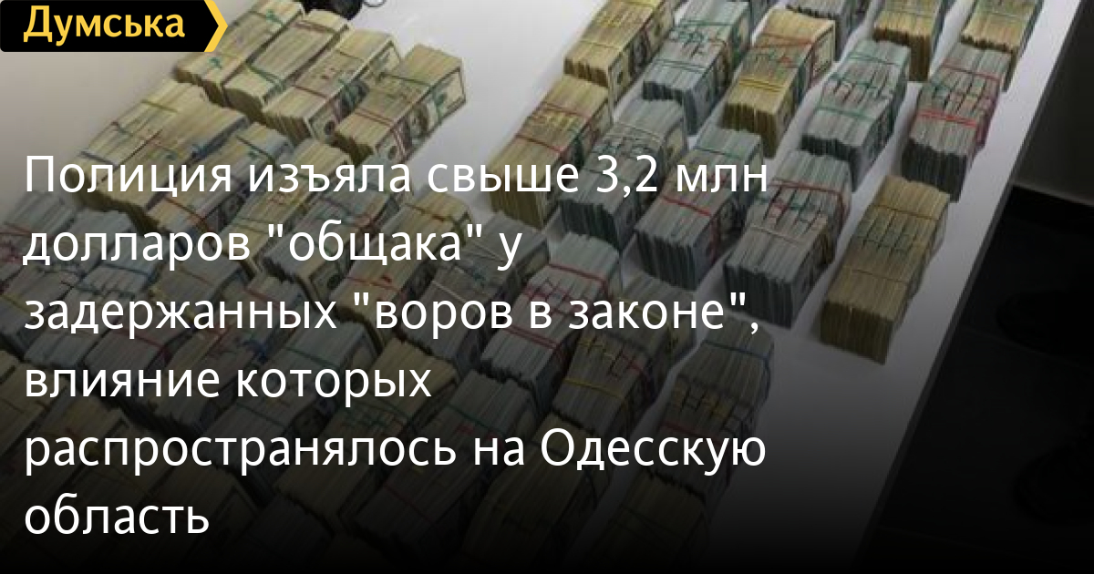 Полиция изъяла свыше 3,2 млн долларов «общака» у задержанных «воров в законе», влияние которых распространялось на Одесскую областьПравоохранители изъяли более 3,2 млн долларов преступного «общака» у задержанных 20 мая «воров в законе» по прозвищу Умка и Лаша Сван. Об этом сообщил Департамент стратегических расследований Нацполиции. Правоохранители отметили, что деньги были изъяты 20 мая во время обысков. Установлено, что изъятые средства являются так называемым преступным «общаком», сбор и распределение которого контролировали «воры в законе» Умка и Лаша Сван. Кроме наличных в разной валюте, полицейские изъяли дорогостоящие транспортные средства, холодное и огнестрельное оружие с патронами, а также более 60 единиц ценных ювелирных изделий. Напомним, 20 мая полиция задержала двух влиятельнейших в Украине «воров в законе». Им инкриминируют умышленное установление и распространение в обществе преступного влияния, совершенные лицом, находящимся в статусе «вора в законе» (ч. 3 ст. 255-1 УК Украины). В Украине Умка и Лаша Сван считались одними из наиболее влиятельных в своей среде. Они держали под контролем криминалитет в нескольких областях сразу – на Запорожье, Николаевщине, Одесчине, Днепропетровщине, а также частично в западных регионах. В случае доказательства вины, «ворам в законе» грозит до 15 лет тюрьмы. СМЕРТЬ РОССИЙСКИМ ОККУПАНТАМ! Заметили ошибку? Выделяйте слова с ошибкой и нажимайте control-enter |