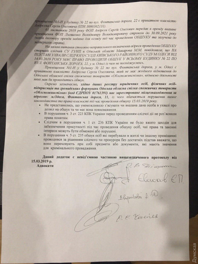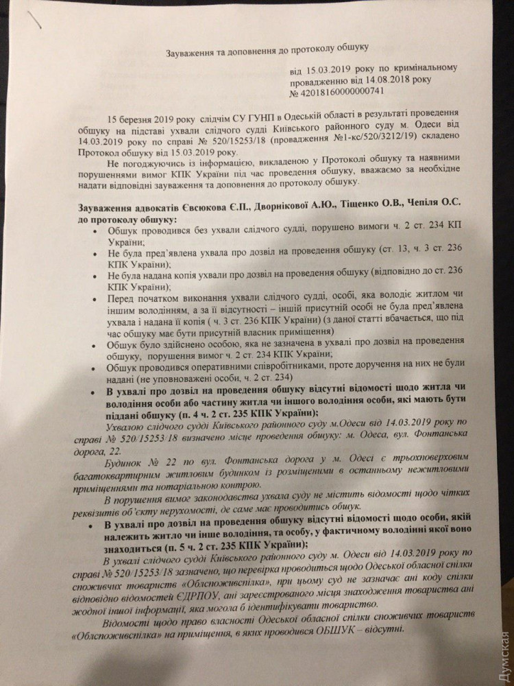 «Ранее у этой организации была квартира в доме по Фонтанской дороге, 22, но фирма продала ее уже три года назад, и не имеет недвижимости в доме. Совсем другая частная фирма, которая подверглась обыску, никак не связана с ней. Следователи управления, возглавляемого Сергеем Шайхетом, подавая иск в суд на разрешение обыска просто указали неверный адрес, а судья Виктор Чаплицкий не проверил данные, указанные в справке из реестра, которые подали следователи», — отмечает издание.