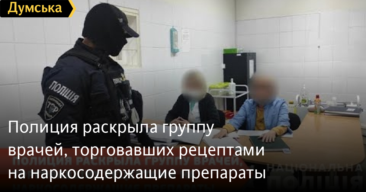 Рецептурные бланки они приобретали у государства по три гривны, а продавали по 500 грн. За несколько месяцев фигуранты незаконно выдали 1300 рецептов и получили за них свыше полумиллиона гривен. СМЕРТЬ РОССИЙСКИМ ОККУПАНТАМ! Заметили ошибку? Выделяйте слова с ошибкой и нажимайте control-enter Думская ТВ. Сюжеты: